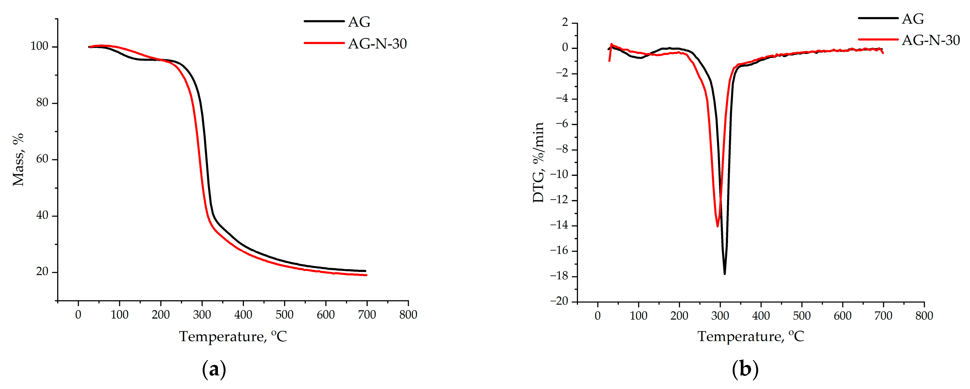3.6. Thermogravimetric Analysis of the Arabinogalactans