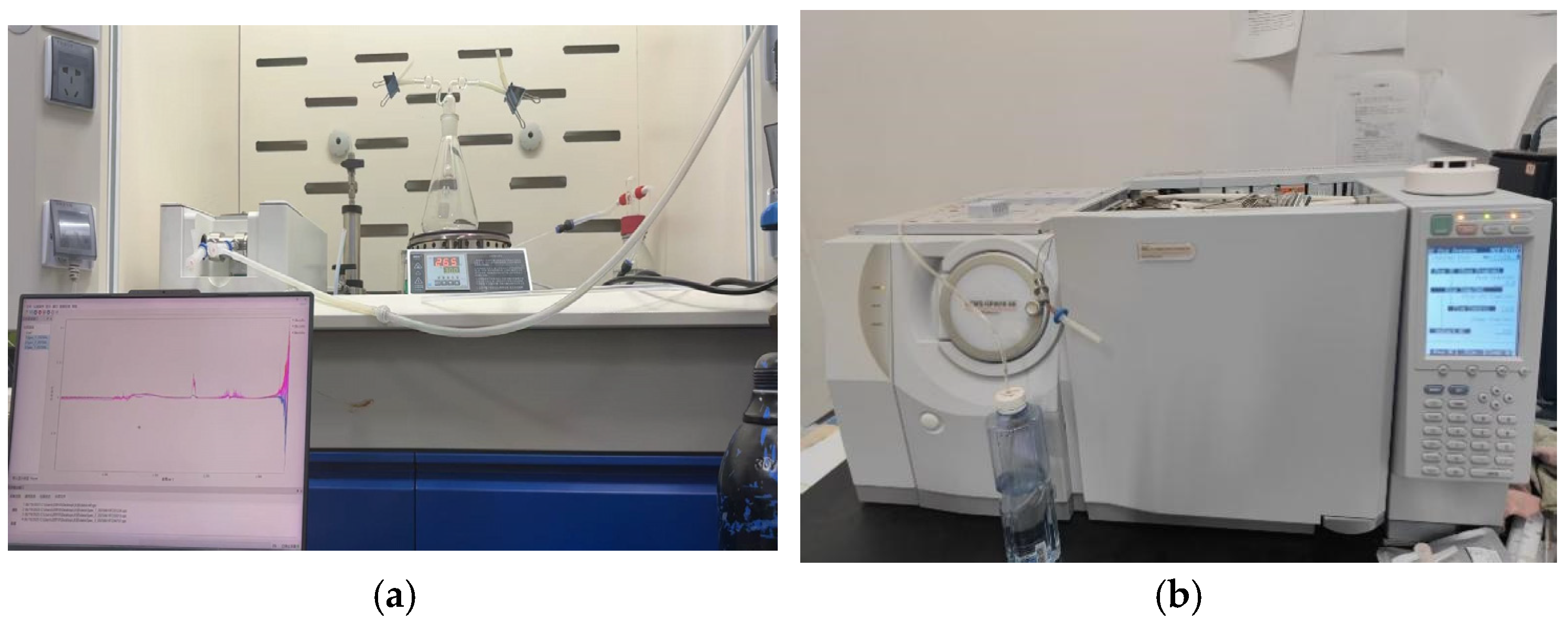 14] Common test methods for insulating and sheathing materials of electric and optical cables—Part 12: Methods for general application-Thermal aging methods, ensuring both the comparability and physical authenticity of the aging process. Gas detection was conducted using an Agilent 7890B gas chromatograph (GC) equipped with FID and TCD detectors, achieving a detection limit of 0.1 ppm. The sampling interval was once every 24 h, ensuring sufficient temporal resolution of the data. The detected gases included CO