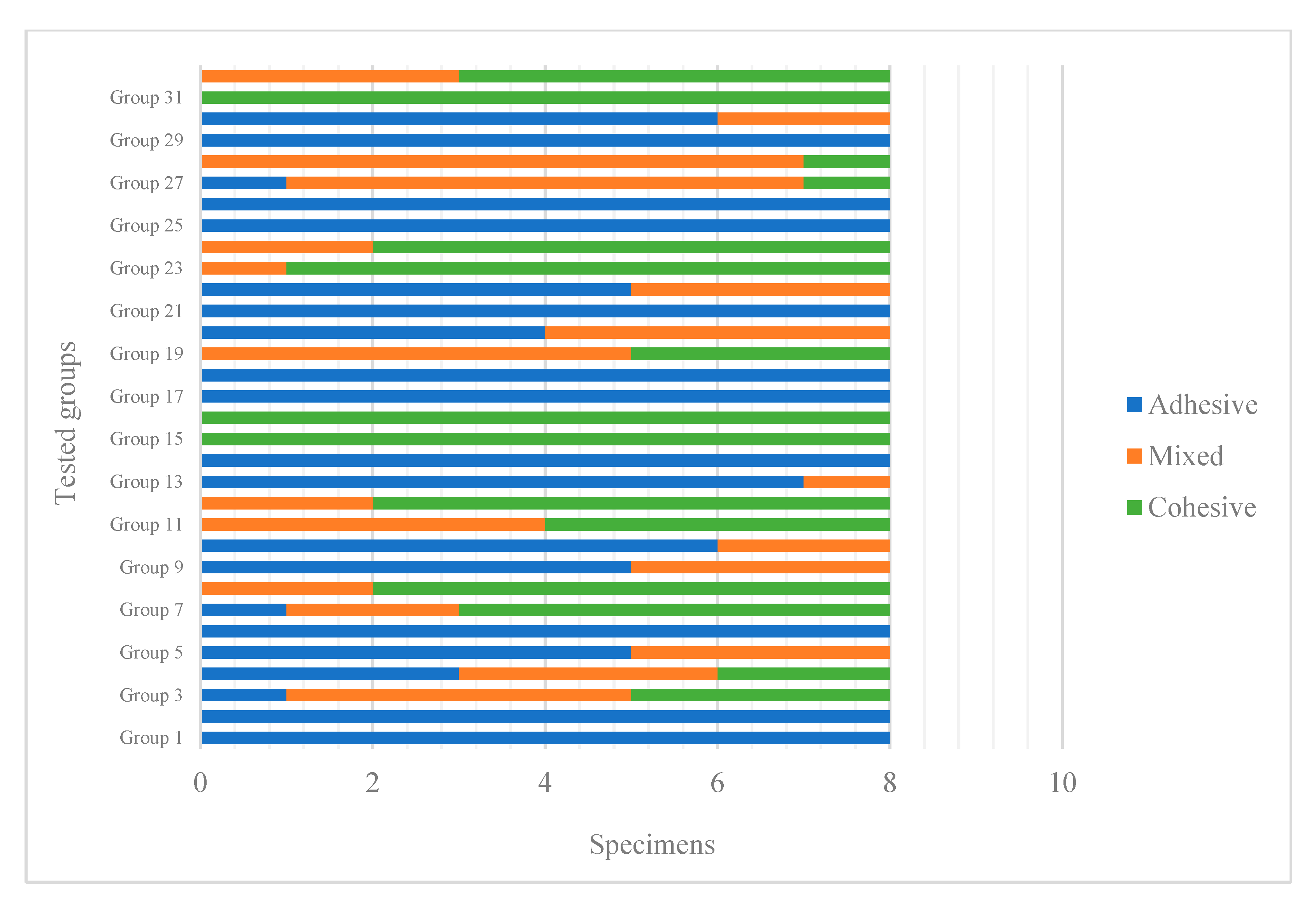Figure 8. Failure types of the tested groups.