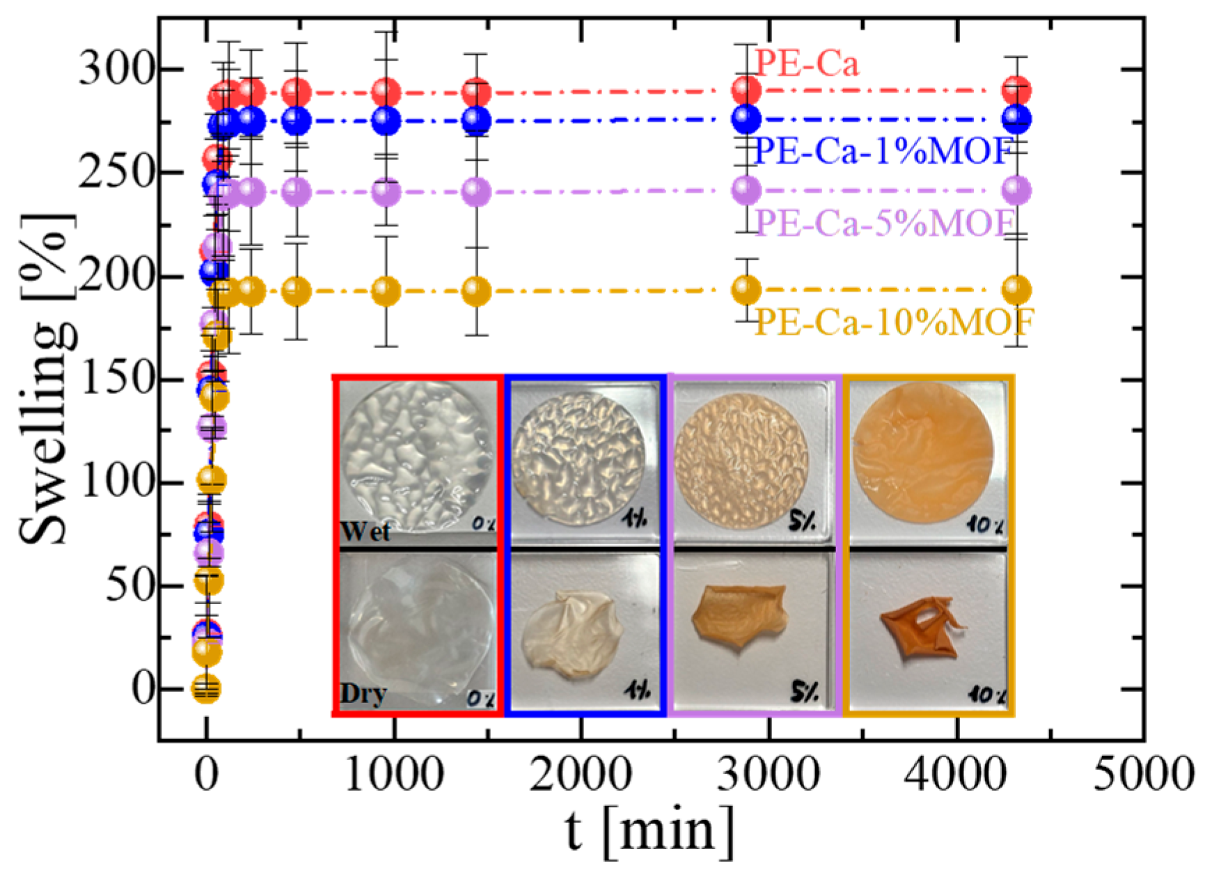| PE–Ca–1%MOF | 31.8 ± 2.4 a | 62.4 ± 4.7 a |