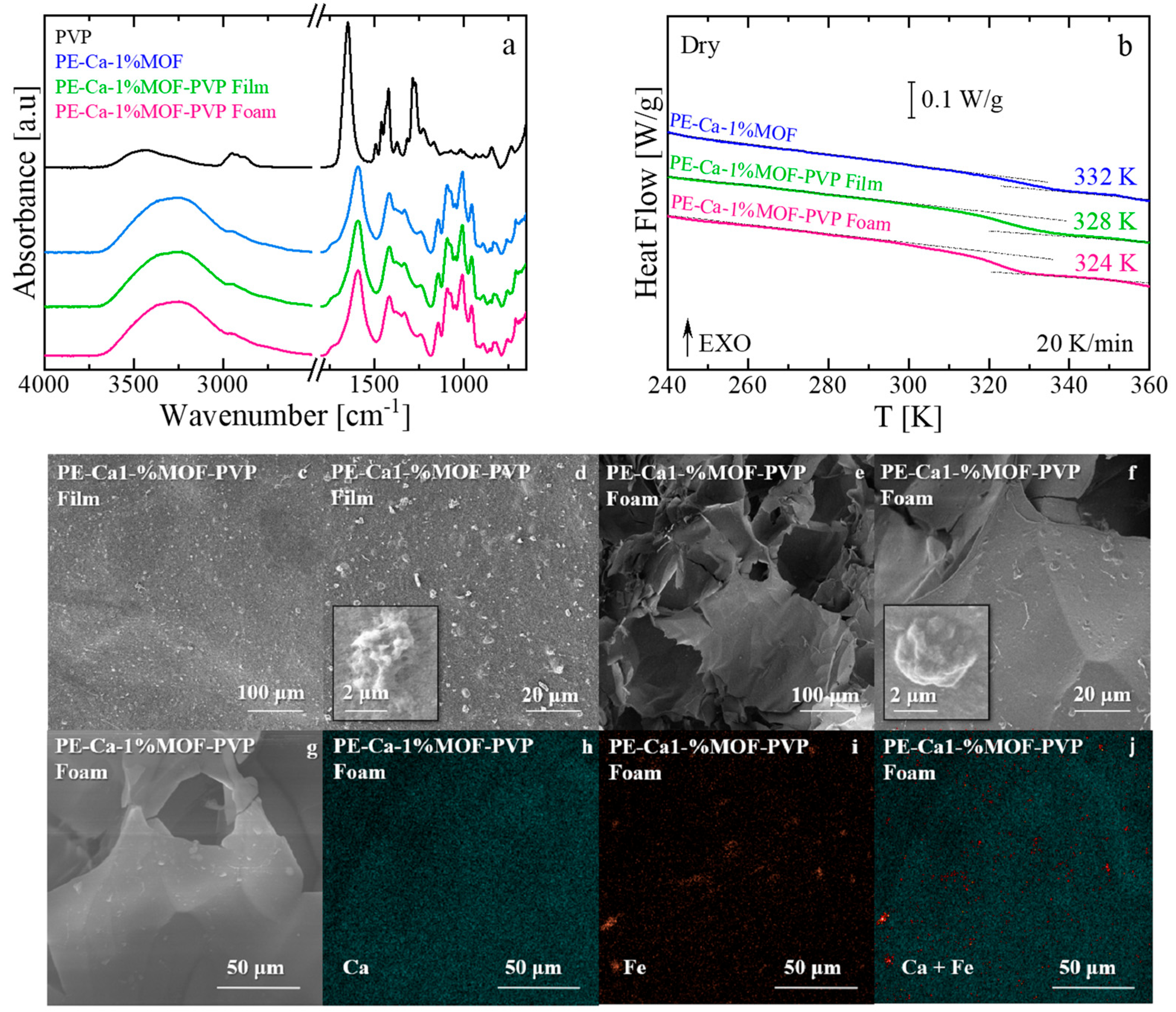 3.8. Structural Characterization of PE–Ca–MOF Film and Foam Using the PVP–Dispersed Method