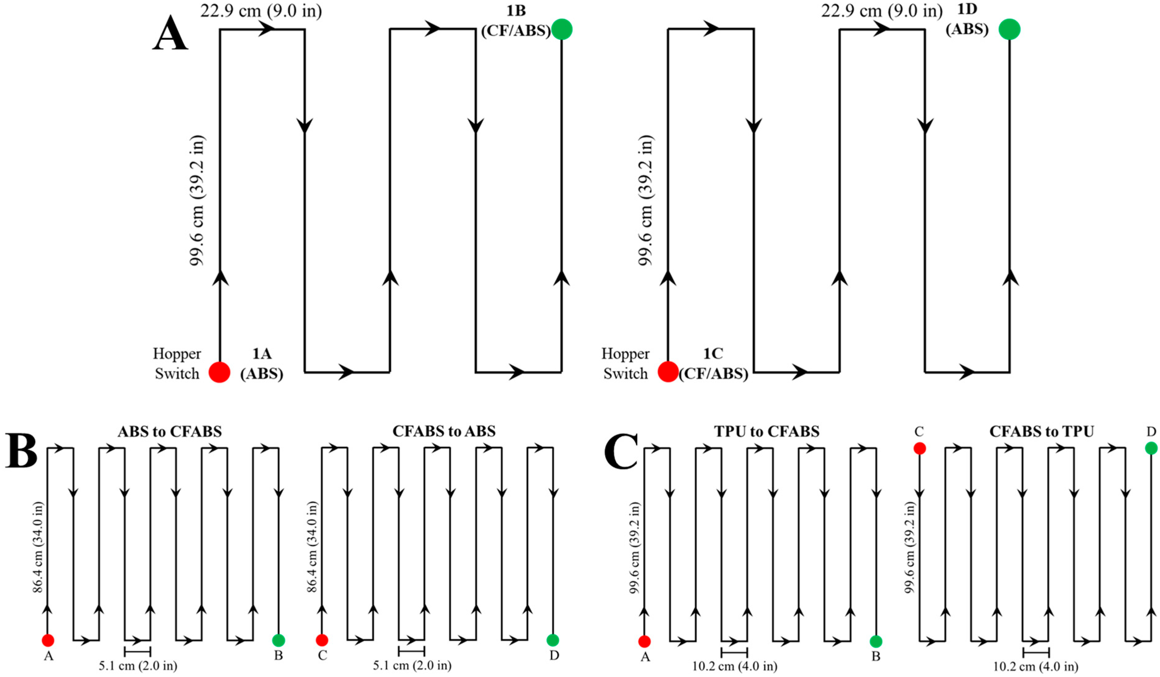 | Transition Direction | ABS to CFABS | TPU to CFABS | CFABS to ABS | CFABS to TPU | ||||