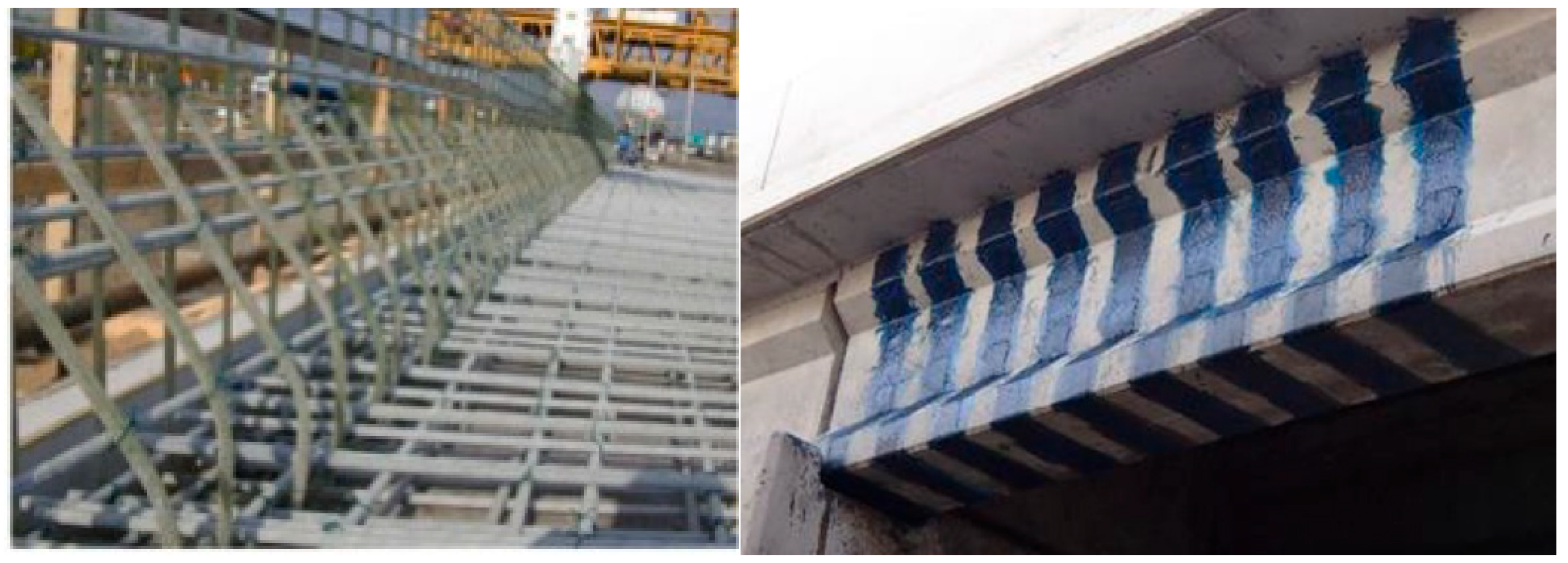 | [64] | 1524 × 254 × 102 | NSM EBR | CFRP tape | 0 | 166 | 59.9–77.4 | 10–20 | 100 | 300 not fail * | ||