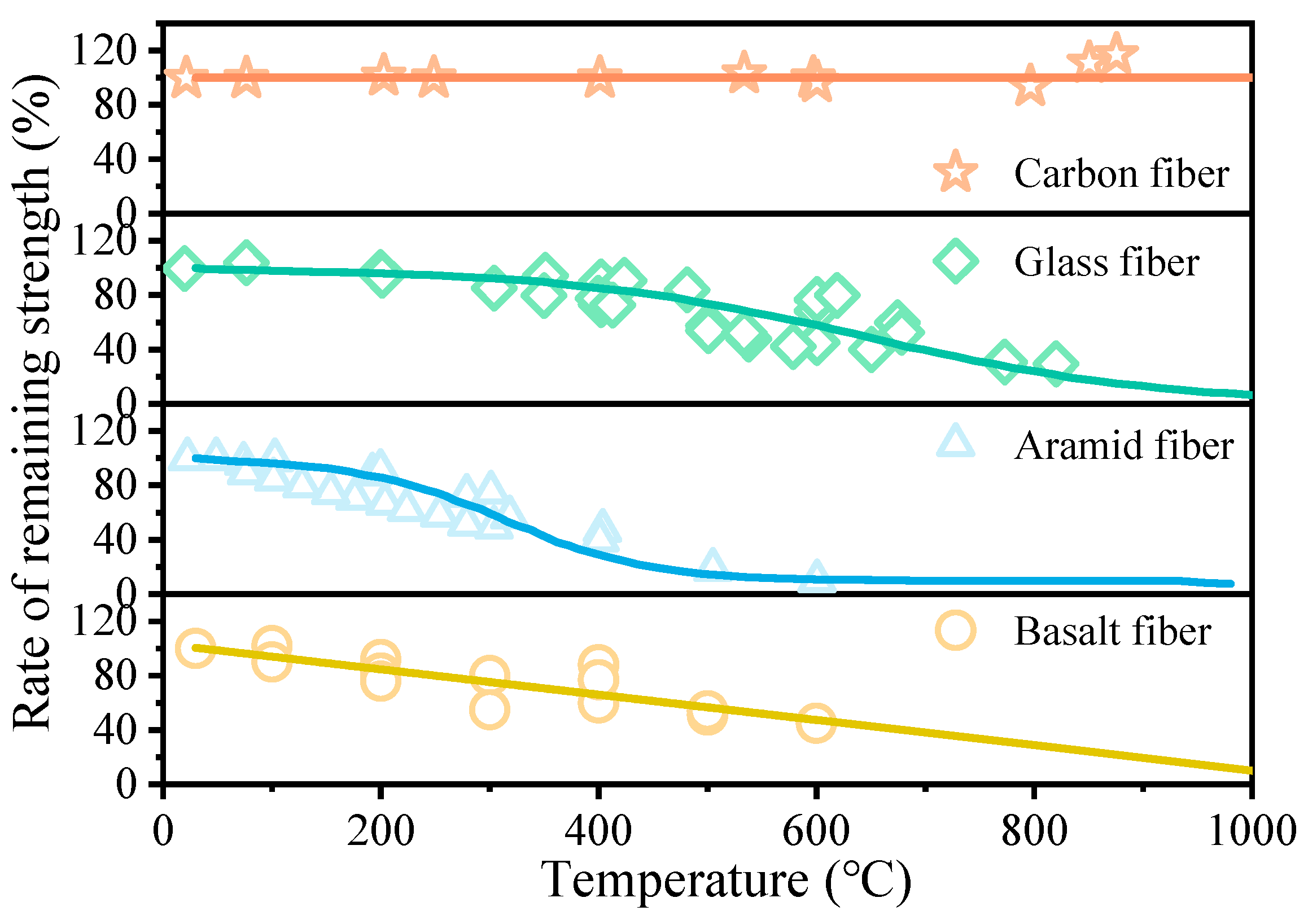 2.1. Mechanical Properties of Fiber at Elevated Temperature