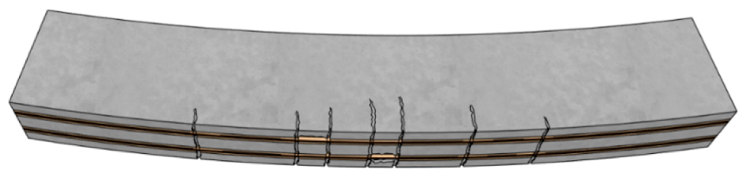 - Firmo, J.P.; Correia, J.R.; Arruda, M. Fire behaviour of NSM-CFRP-strengthened reinforced concrete beams. Experimental and numerical study. In Proceedings of the 8th International Conference on Fibre-Reinforced Polymer (FRP) Composites in Civil Engineering, CICE, Hong Kong, China, 14–16 December 2016; Department of Civil and Environmental Engineering and Research Institute for Sustainable Urban Development, The Hong Kong Polytechnic University: Hong Kong, China, 2016. [Google Scholar]