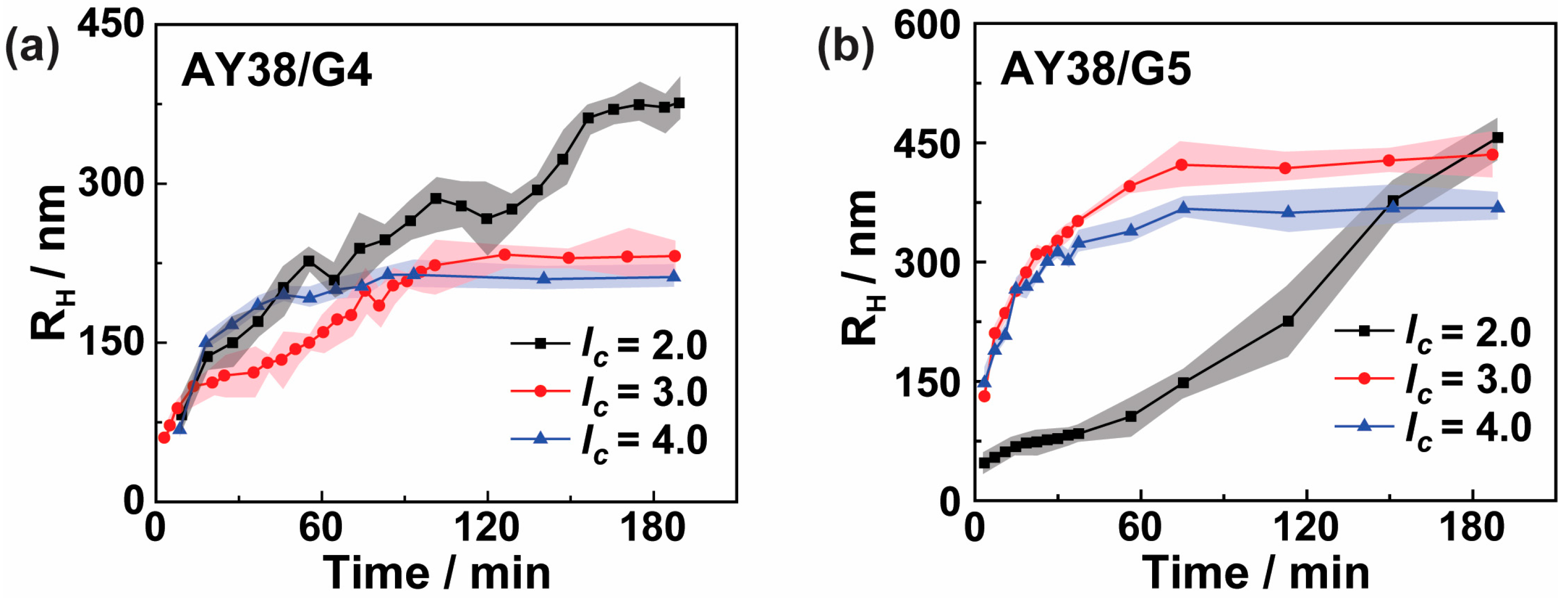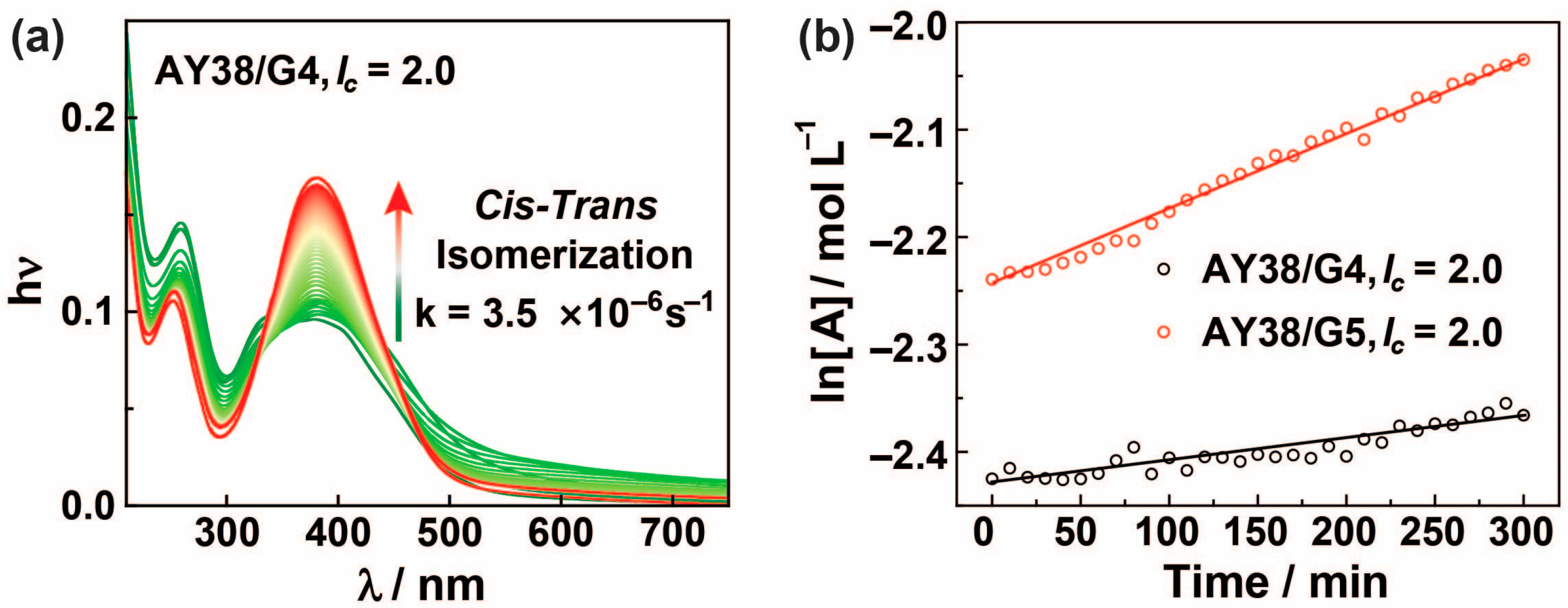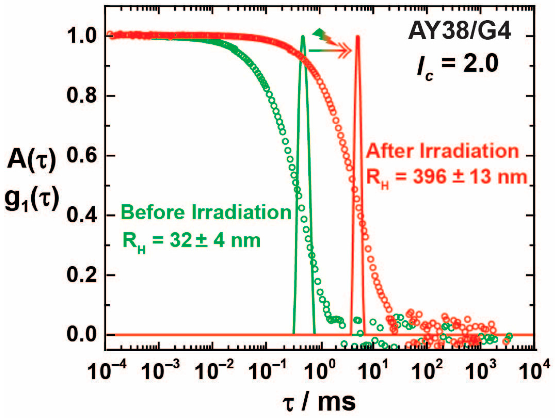 - Agarwal, M.; Zika, A.; Yücel, M.; Schweins, R.; Kohlbrecher, J.; Gröhn, F. The Role of Light Irradiation and Dendrimer Generation in Directing Electrostatic Self-Assembly. Polymers 2025, 17, 170. [Google Scholar] [CrossRef]