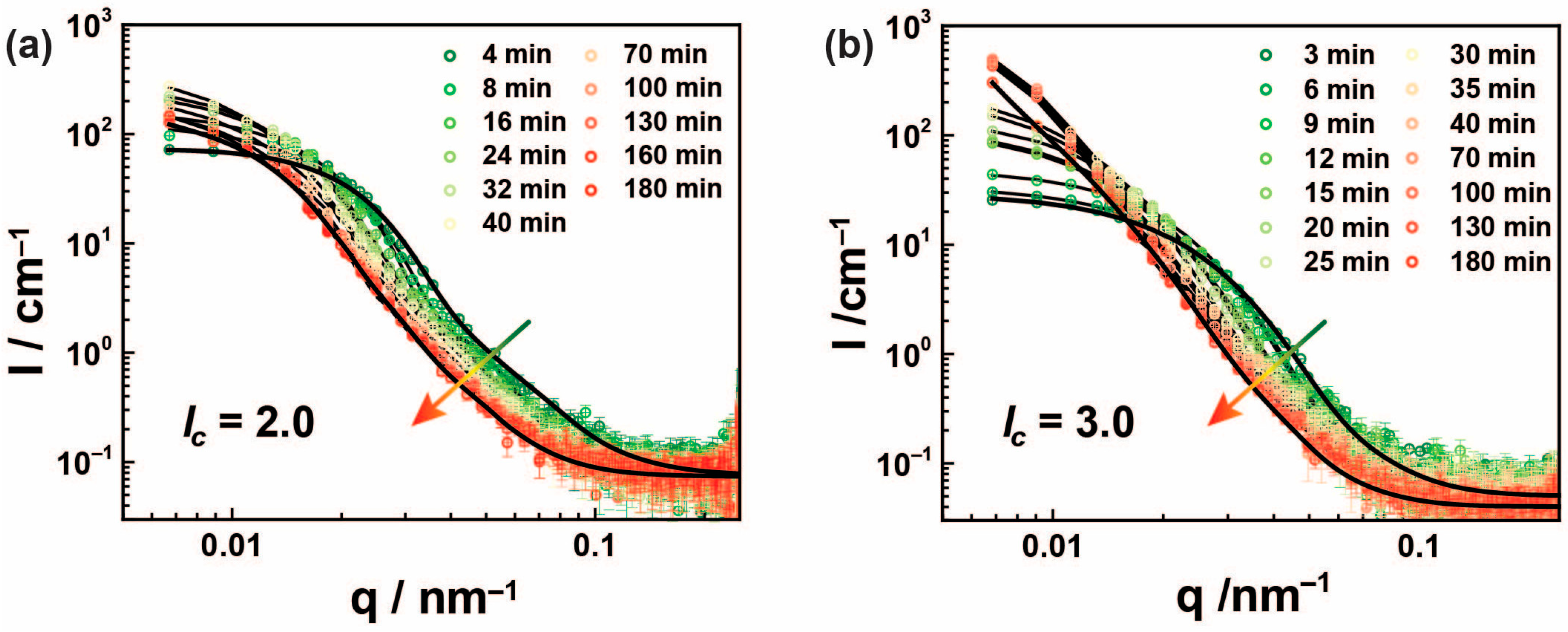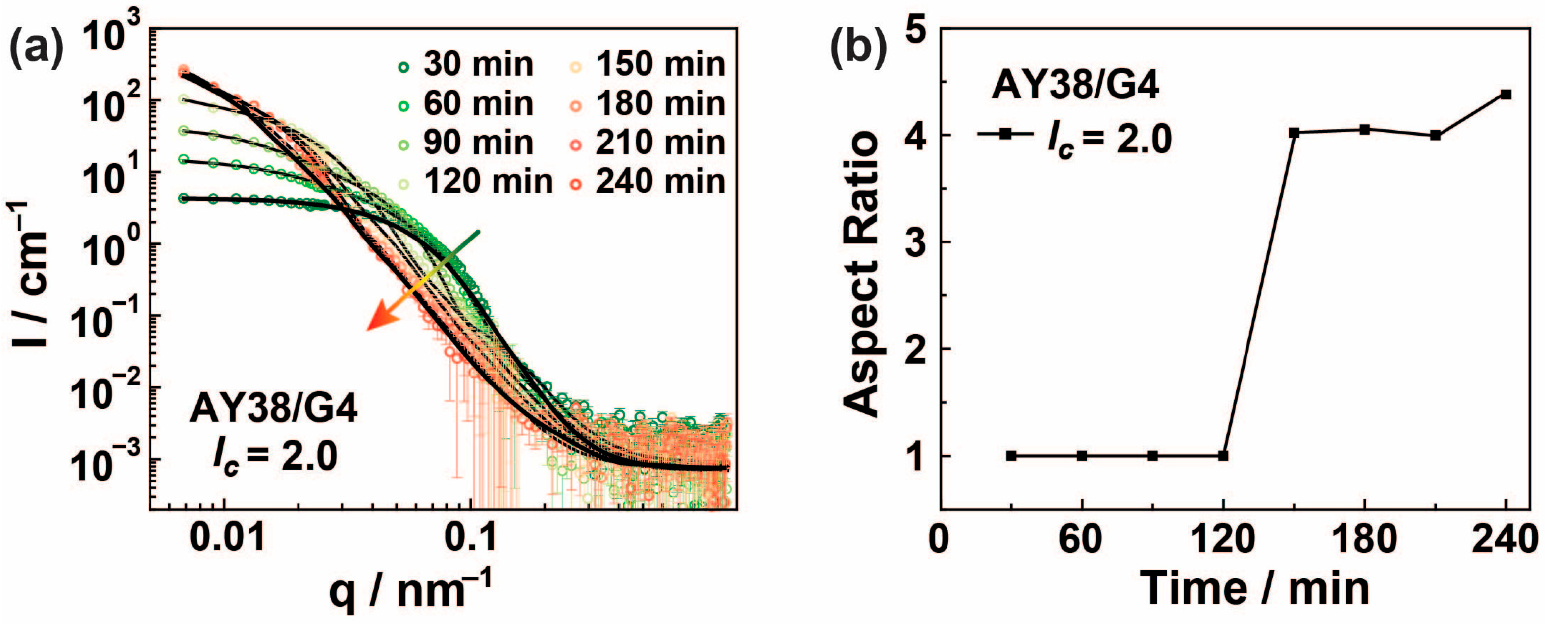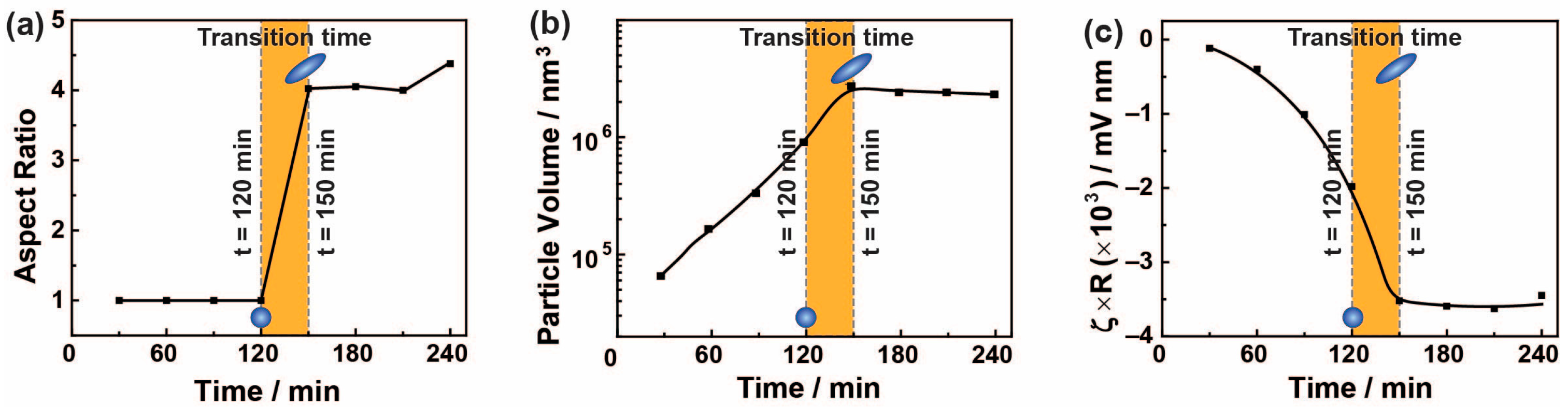 | Time/min | Shape | Rmin/nm | PDI (Rmin) | Rmaj/nm | PDI (Rmaj) | χ2 |