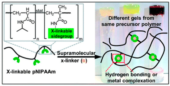 Self-healing composites are intelligent materials that can autonomously restore themselves. They are tailored to address issues like cracks that develop deep inside, which are hard to spot and fix. Graphene’s impressive electrical, thermal, and mechanical properties establish it as a preferred additive for producing self-healing composites that can be employed across multiple applications [152]. Metallopolymers are macromolecules embedded with transition metals that bestow a range of functional traits, including self-healing. A salient type of self-healing polymers, metallosupramolecular polymers, forms through the connection between meta–ligand (M-L) complexation. This method is effective because of the reversibility, high stability, and fast formation rate of coordination complexes [153,154]. Figure 9 provides a graphical representation of the formation of non-covalent bonds in supramolecular systems.
