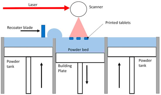 - Gueche, Y.A.; Sanchez-Ballester, N.M.; Cailleaux, S.; Bataille, B.; Soulairol, I. Selective Laser Sintering (SLS), a New Chapter in the Production of Solid Oral Forms (SOFs) by 3D Printing. Pharmaceutics 2021, 13, 1212. [Google Scholar] [CrossRef] [PubMed]