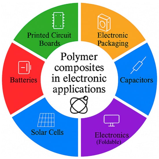 - Dhanasekar, S.; Stella, T.J.; Thenmozhi, A.; Bharathi, N.D.; Thiyagarajan, K.; Singh, P.; Reddy, Y.S.; Srinivas, G.; Jayakumar, M. Study of Polymer Matrix Composites for Electronics Applications. J. Nanomater. 2022, 1, 8605099. [Google Scholar] [CrossRef]