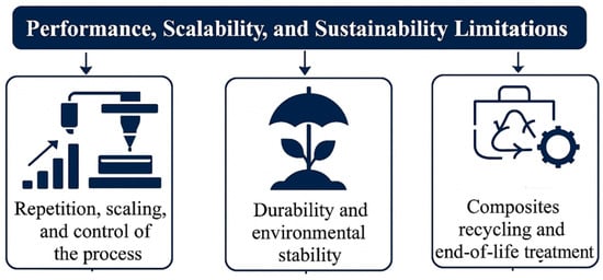 Although natural fibers (e.g., jute, flax, hemp, kenaf, sisal, bamboo) offer clear benefits in terms of sustainability, low density, and reduced environmental burden, they exhibit inherent limitations that must be critically considered for realistic engineering deployment in AM polymer composites. Compared with synthetic fibers (carbon or glass), natural fibers generally provide lower tensile strength, lower stiffness, and reduced fatigue resistance, which restricts their use in high-load structural applications where stiffness retention and long-term reliability are mandatory [69,77].