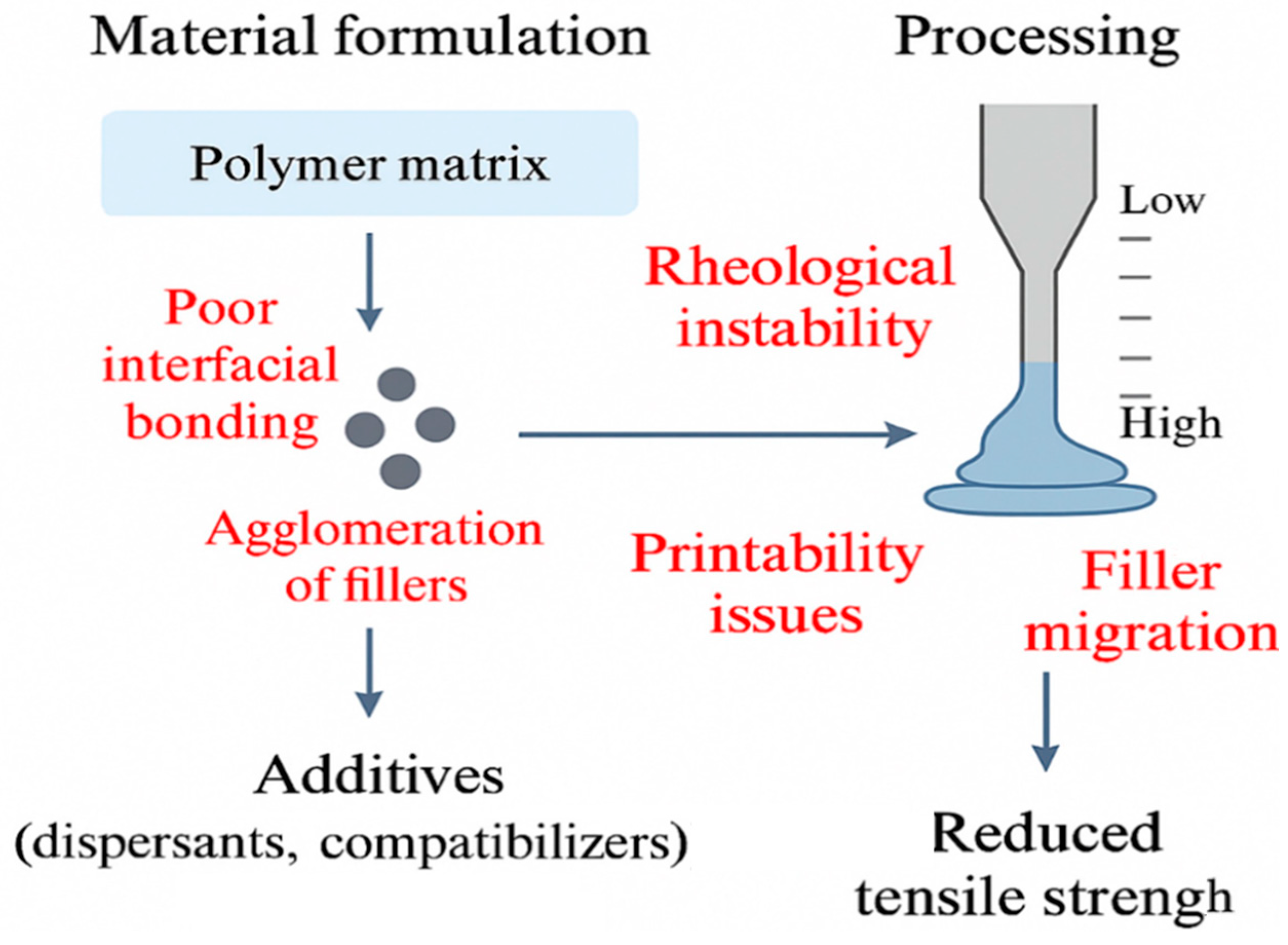| High Filler Content | Causes poor flow behavior, clogging, and reduced structural integrity. |