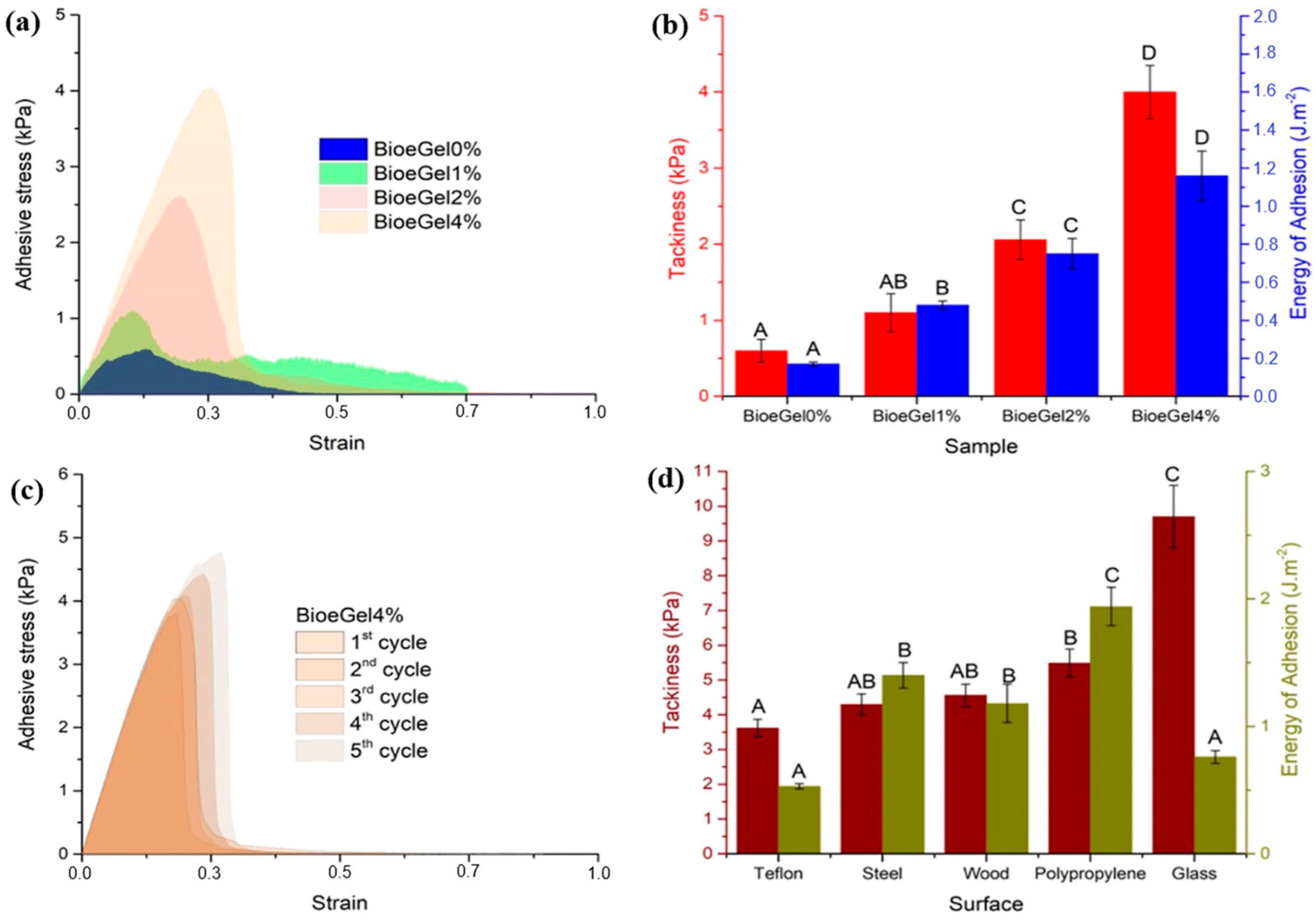 3.2. Mechanisms Controlling Gelatin-Based Gels’ Adhesion Features