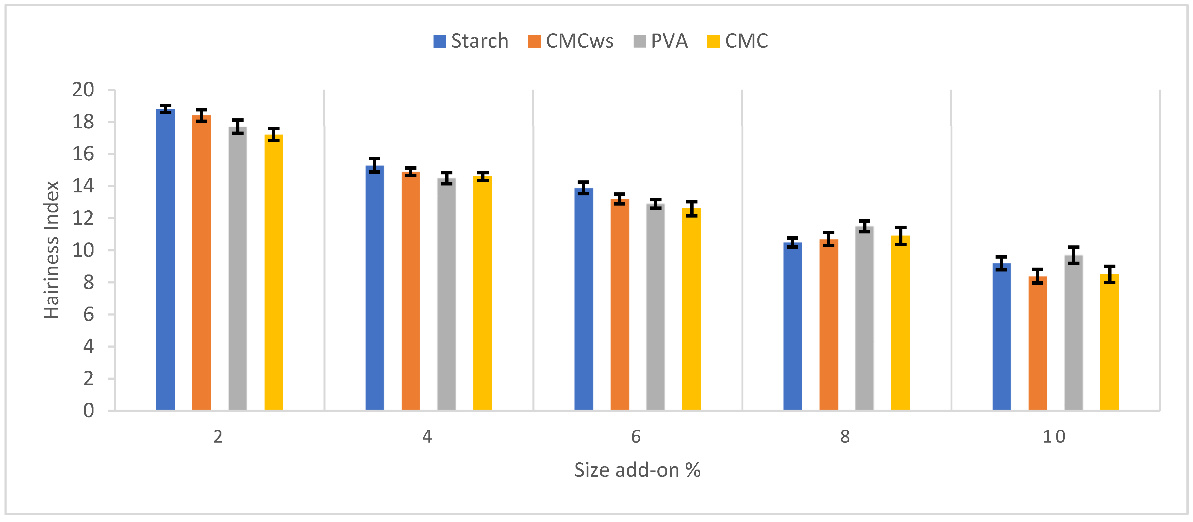 2.8. Weavability Evaluation of CMCws-Sized Warp Yarns