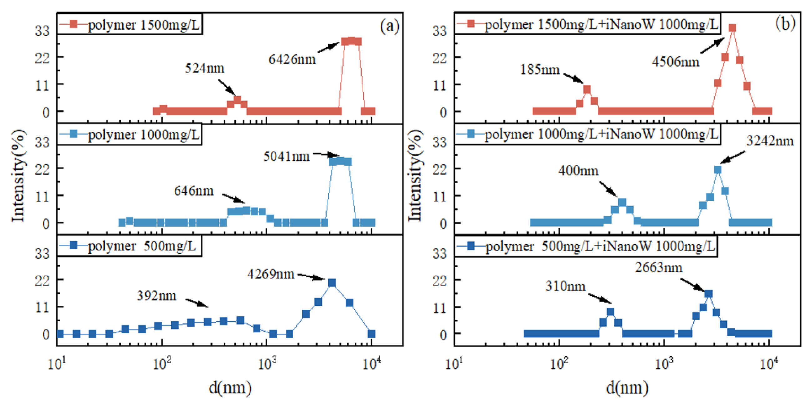 (a) Aggregate Molecular Size in Polymer Solution; (b) Aggregate Molecular Size in iNanoW–polymer binary composite Solution.