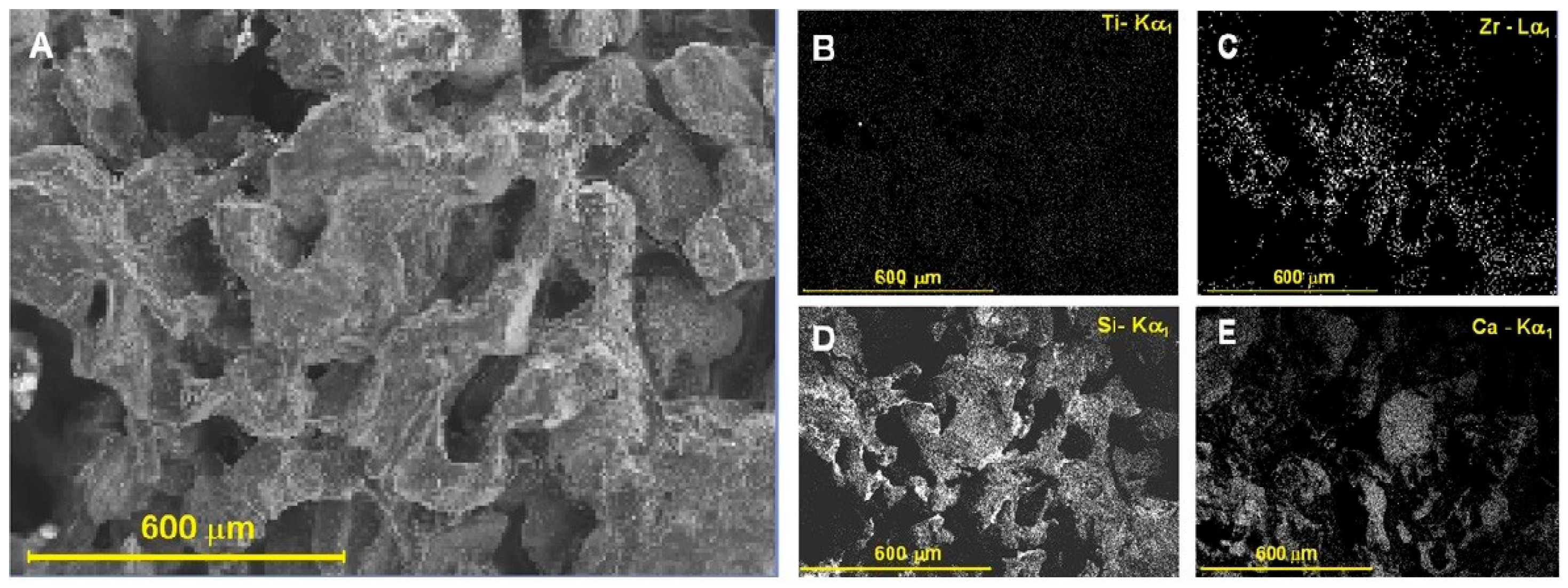 3.3.2. Scanning Electron Microscopy (SEM) and Energy Dispersive Spectroscopy (EDS)
