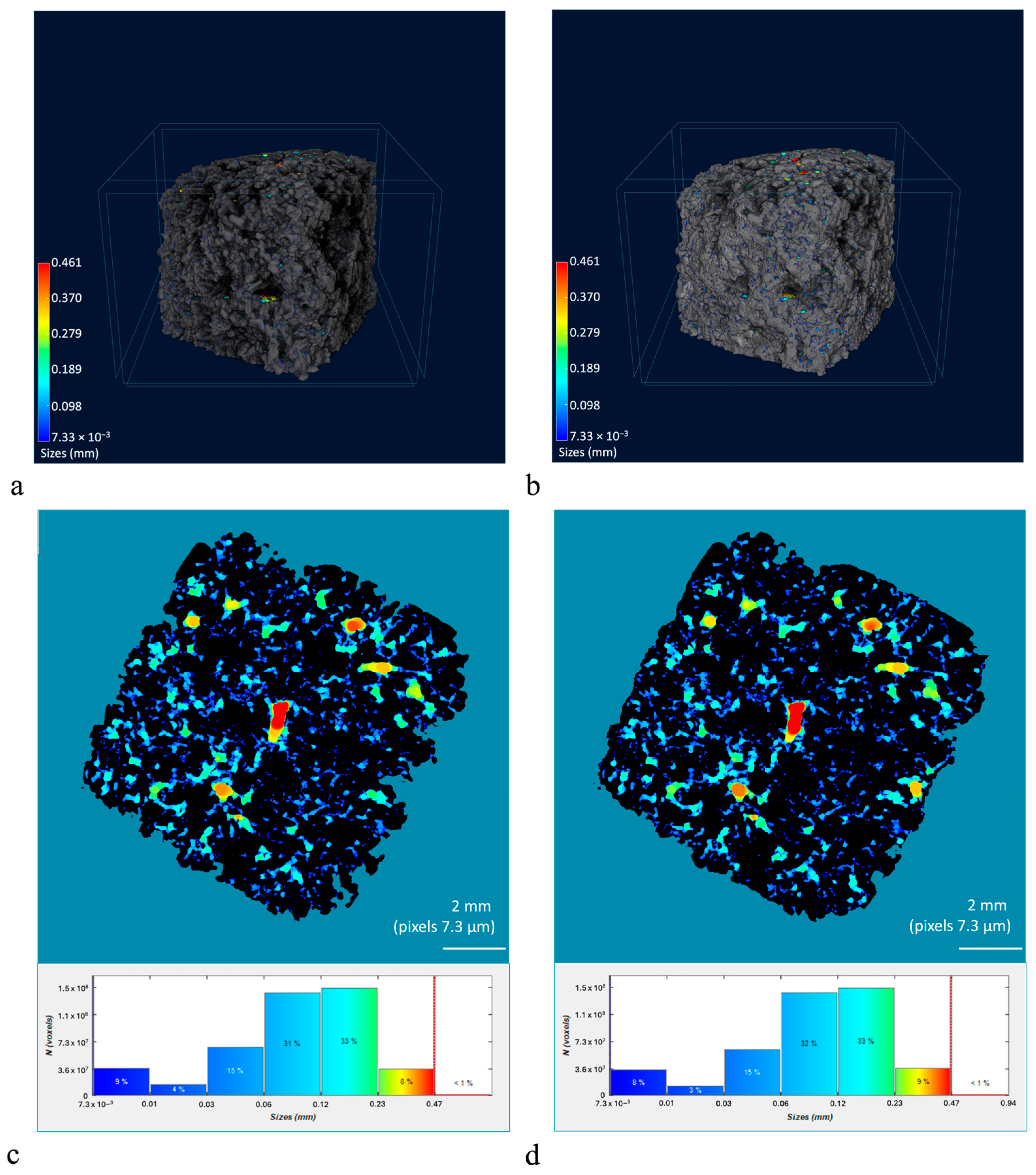 - Bugani, S.; Camaiti, M.; Morselli, L.; Van de Casteele, E.; Janssens, K. Investigating morphological changes in treated vs. untreated stone building materials by x-ray micro-CT. Anal. Bioanal. Chem. 2008, 391, 1343–1350. [Google Scholar] [CrossRef]