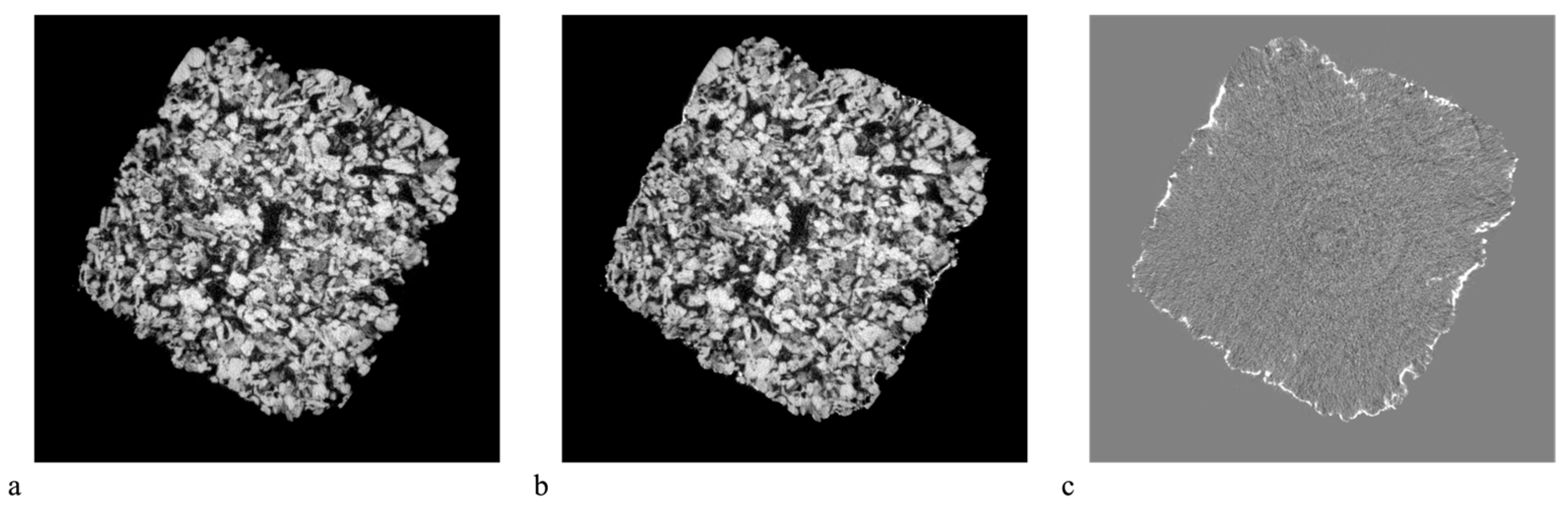- Callow, B.; Falcon-Suarez, I.; Marin-Moreno, H.; Bull, J.M.; Ahmed, S. Optimal X-ray micro-CT image based methods for porosity and permeability quantification in heterogeneous sandstones. Geophys. J. Int. 2020, 223, 1210–1229. [Google Scholar] [CrossRef]