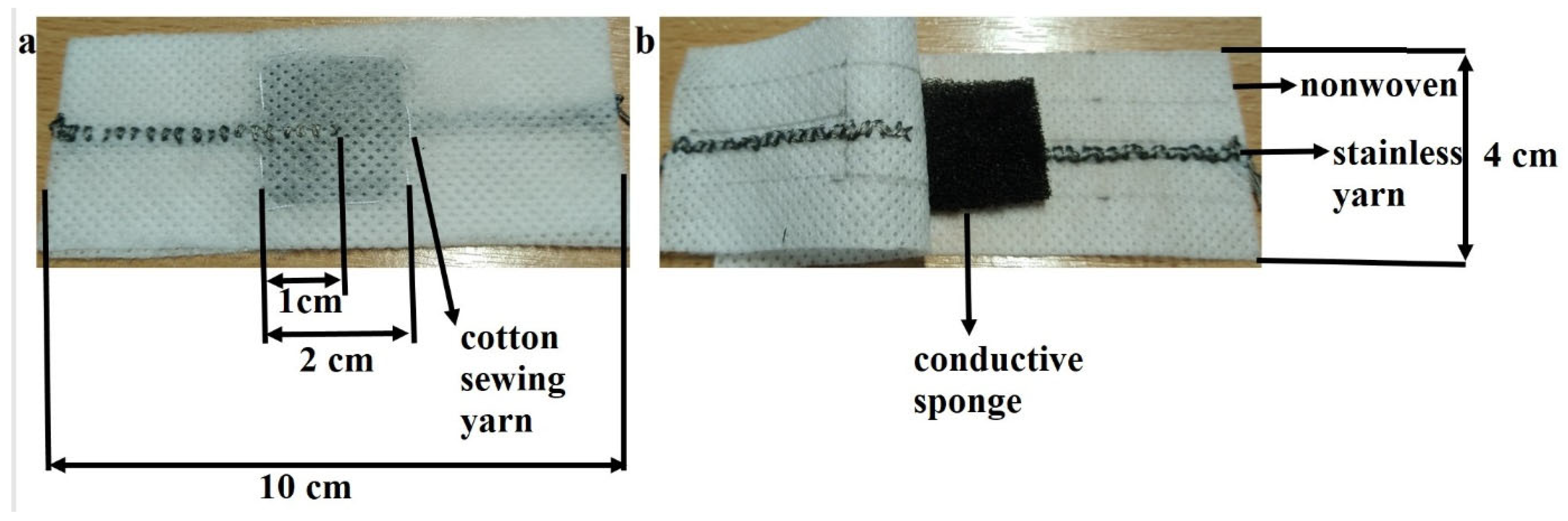 - Liu, Q.; Zhang, Y.; Sun, X.; Liang, C.; Han, Y.; Wu, X.; Wang, Z. All textile-based robust pressure sensors for smart garments. Chem. Eng. J. 2023, 454, 140302. [Google Scholar] [CrossRef]