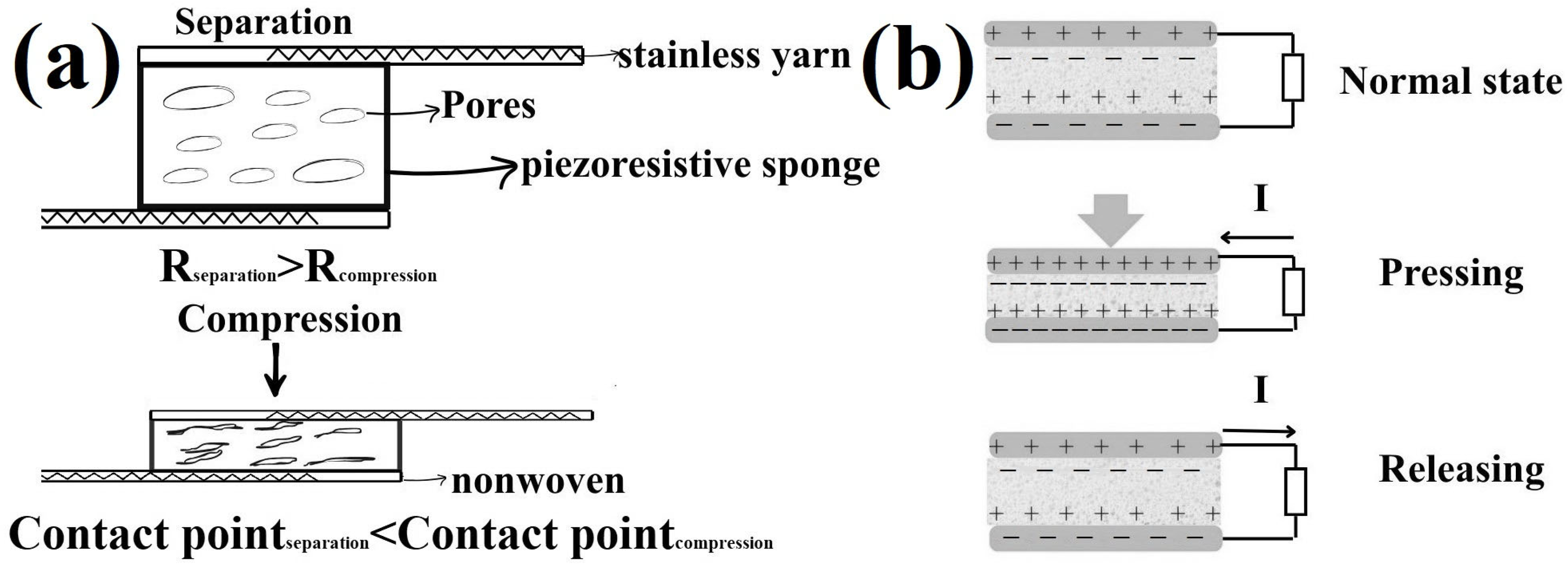 - Wang, Y.; Luo, W.; Wen, Y.; Zhao, J.; Chen, C.; Chen, Z.; Zhang, X.-S. Wearable, washable piezoresistive pressure sensor based on polyurethane sponge coated with composite CNT/CB/TPU. Mater. Today Phys. 2025, 52, 101681. [Google Scholar] [CrossRef]