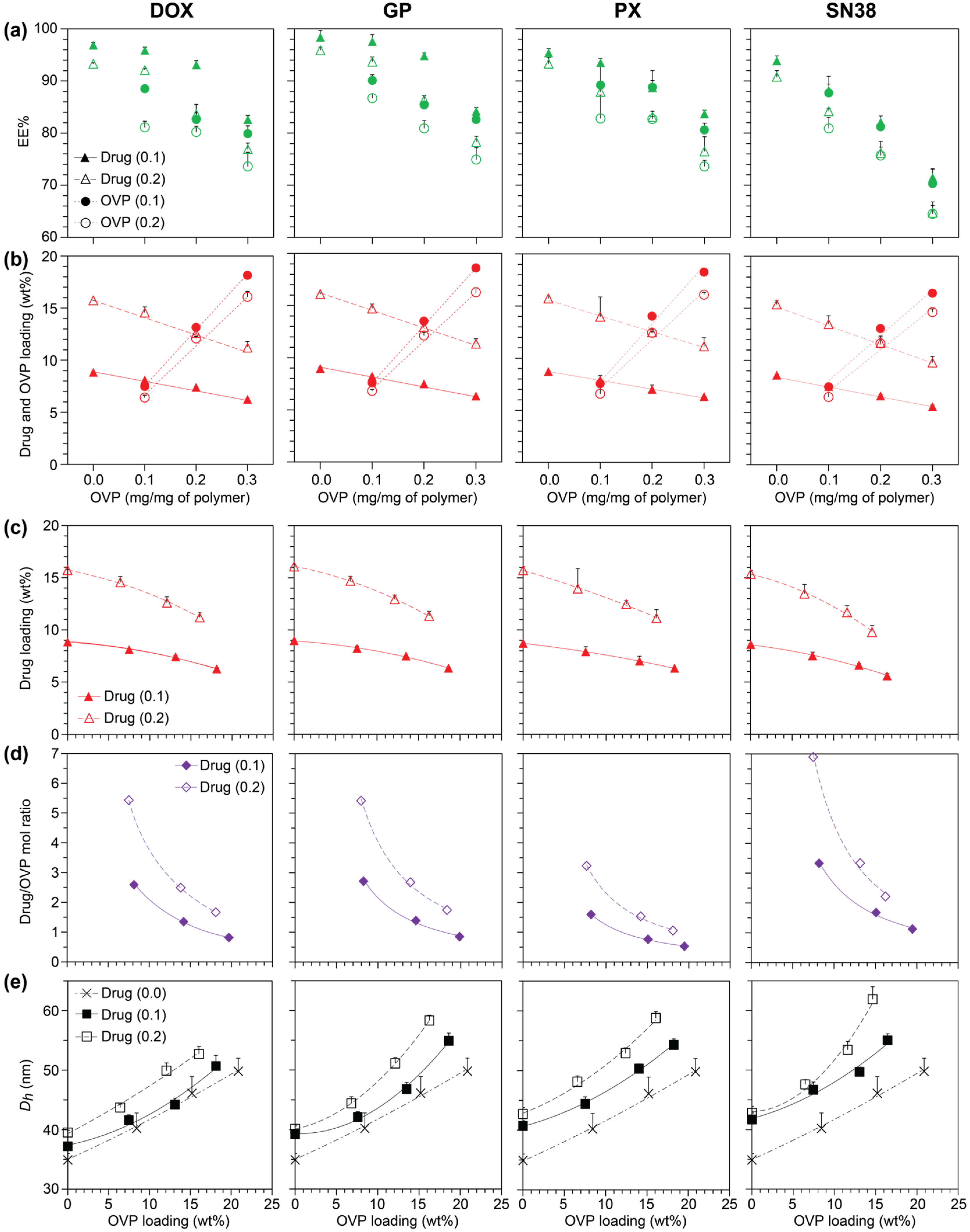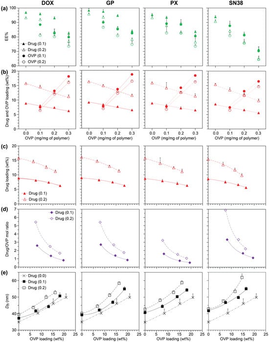 3.2. Influence of Copolymer Composition and OVP Loading on Drug Co-Encapsulation