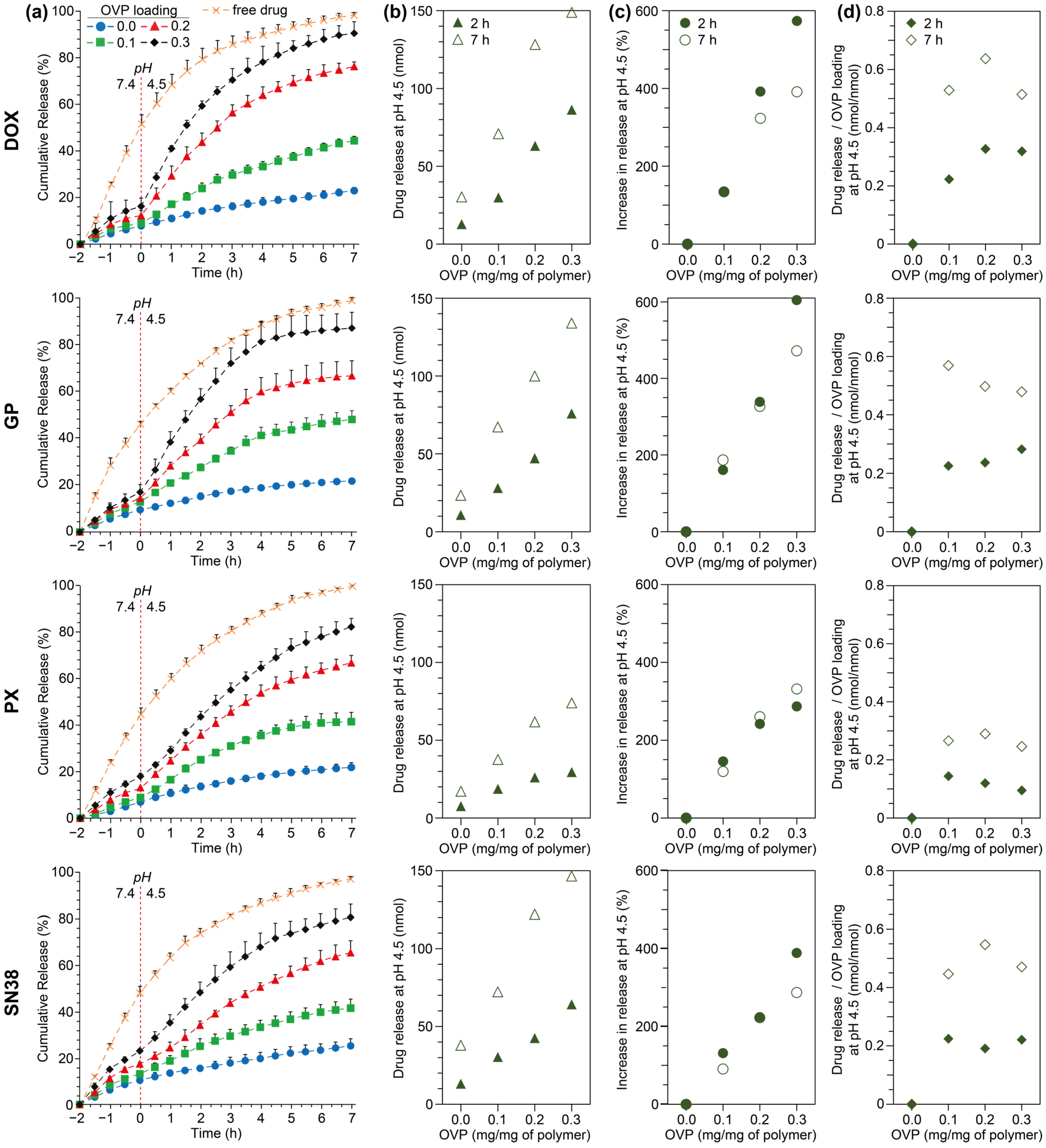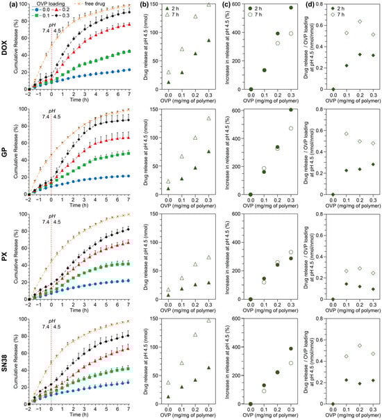3.3. Influence of Copolymer Composition and OVP Loading on pH-Dependent Drug Release
