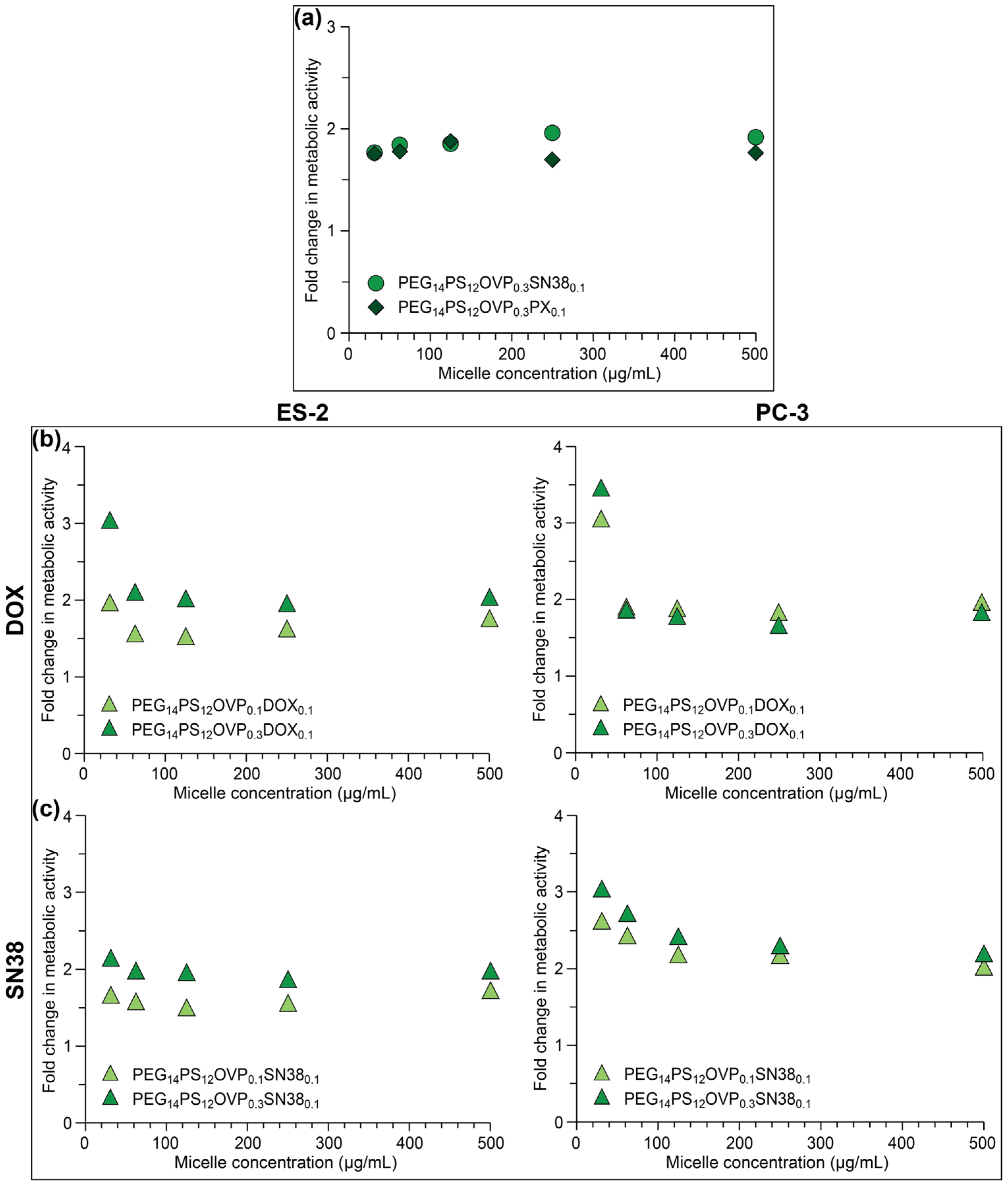 3.4. Effect of Polymer Composition and OVP Loading on the Cytotoxicity of Drug-Loaded Micelles