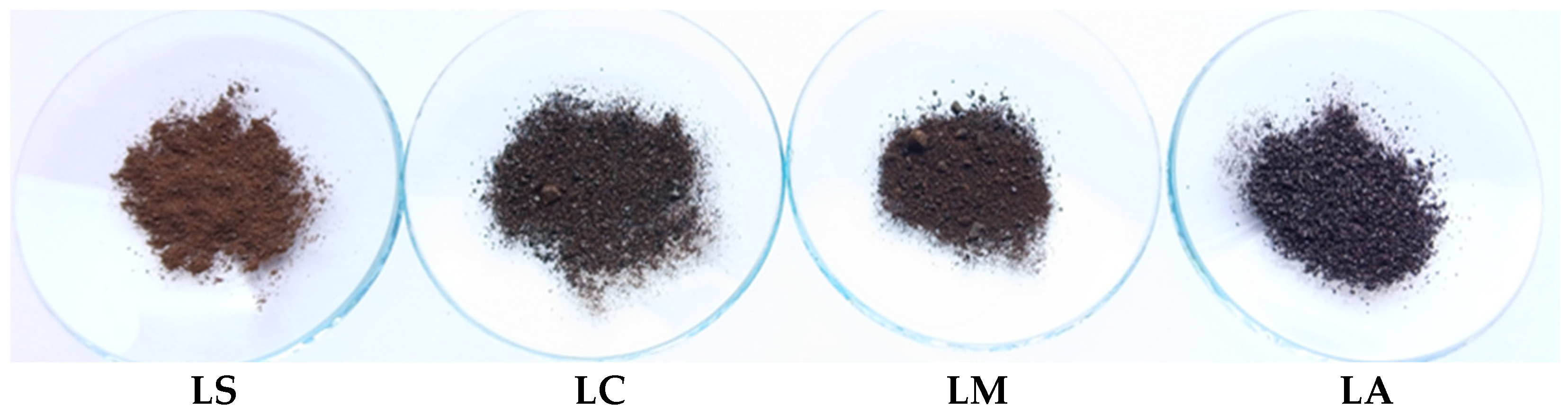 Based on the adsorption efficiency, the affinity of LS for different metal ions followed the order Zn > Cu > Ni > Cr. For LC, the adsorption affinity order was Cu > Zn ≈ Cr > Ni.