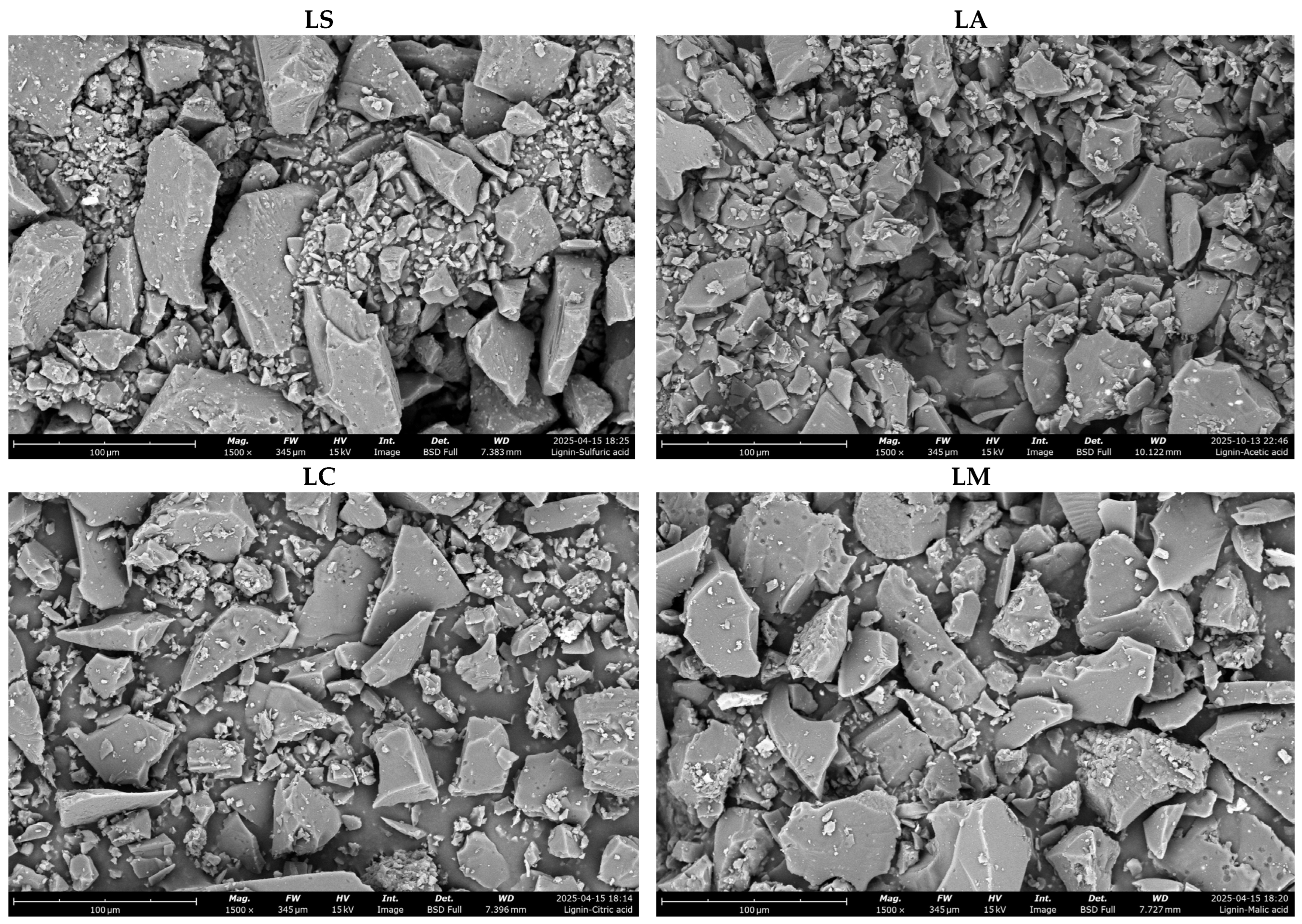 Analysis by scanning electron microscopy (SEM) indicated that all isolated lignin fractions share a similar morphology, consisting of compact agglomerates of irregularly shaped particles (