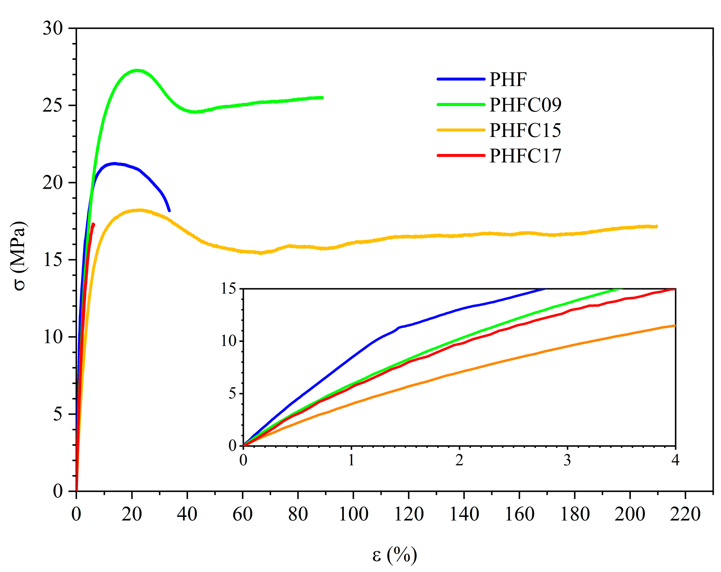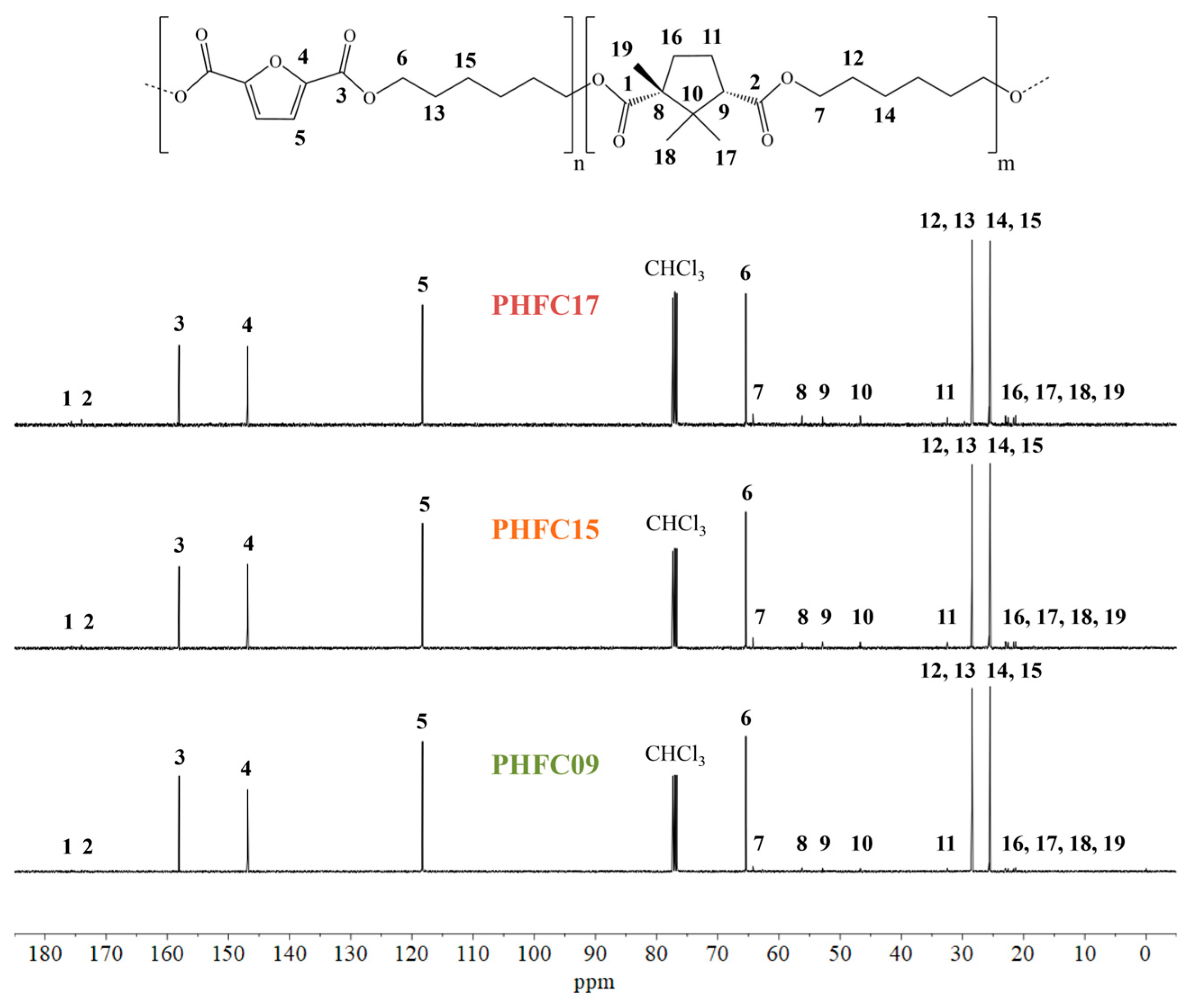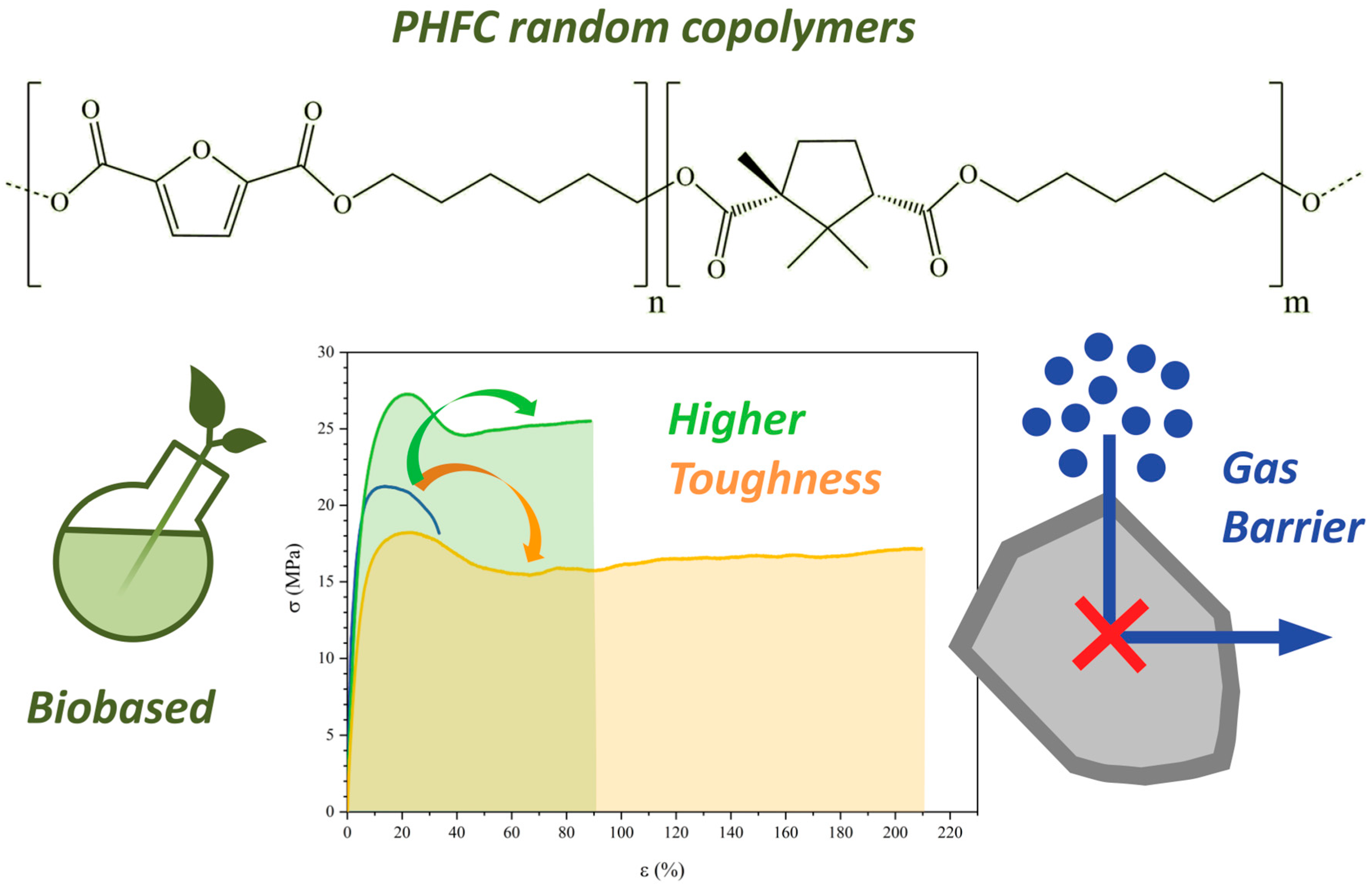 - The mechanical properties were significantly improved compared to the homopolymer of reference, PHF. In particular, in the case of PHFC15, flexibility improved of about 33%, elongation at break by 430%, and toughness by 223%.