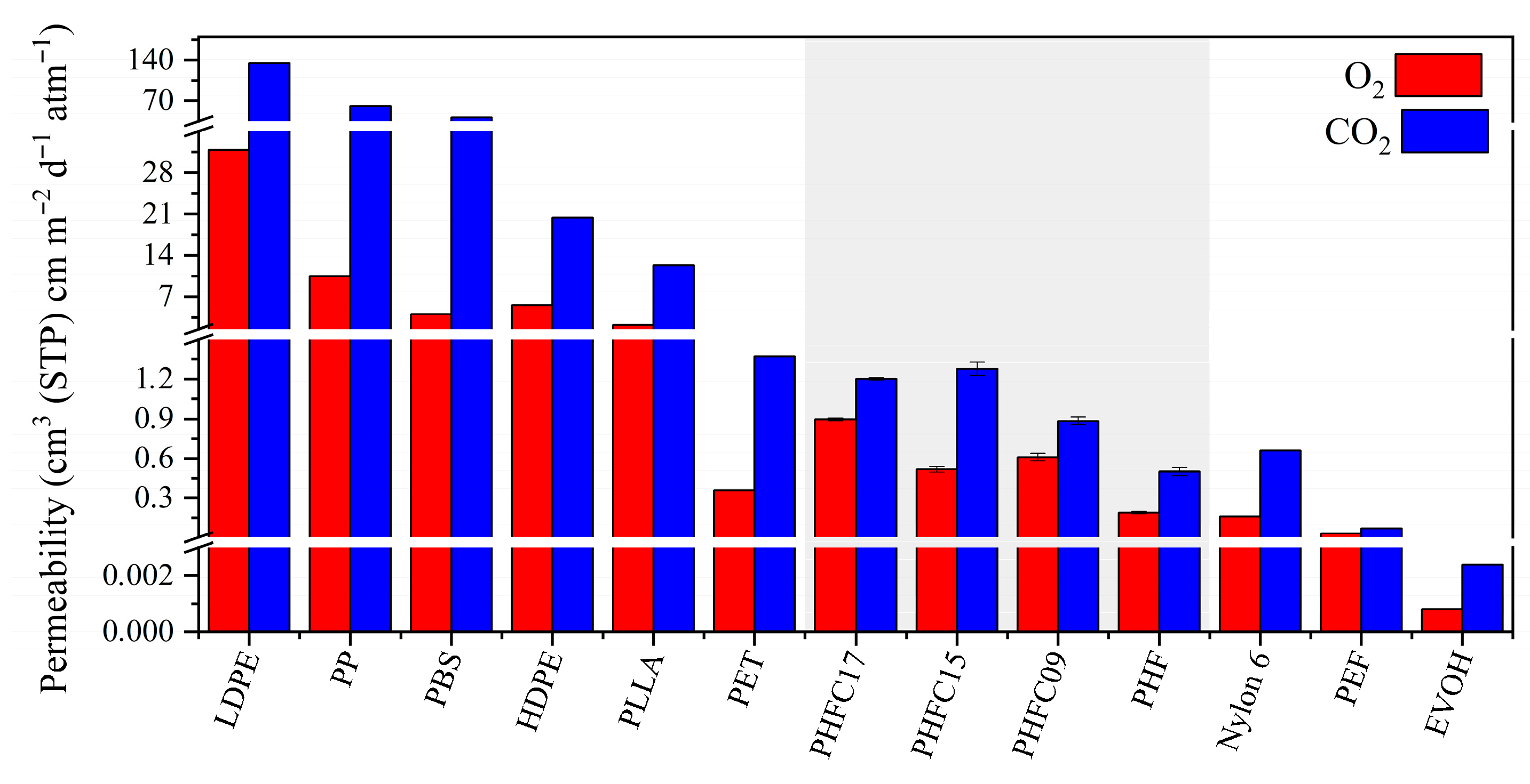 | CO2 Permeability | 0.50 ± 0.03 | 0.88 ± 0.03 | 1.28 ± 0.05 | 1.20 ± 0.01 |