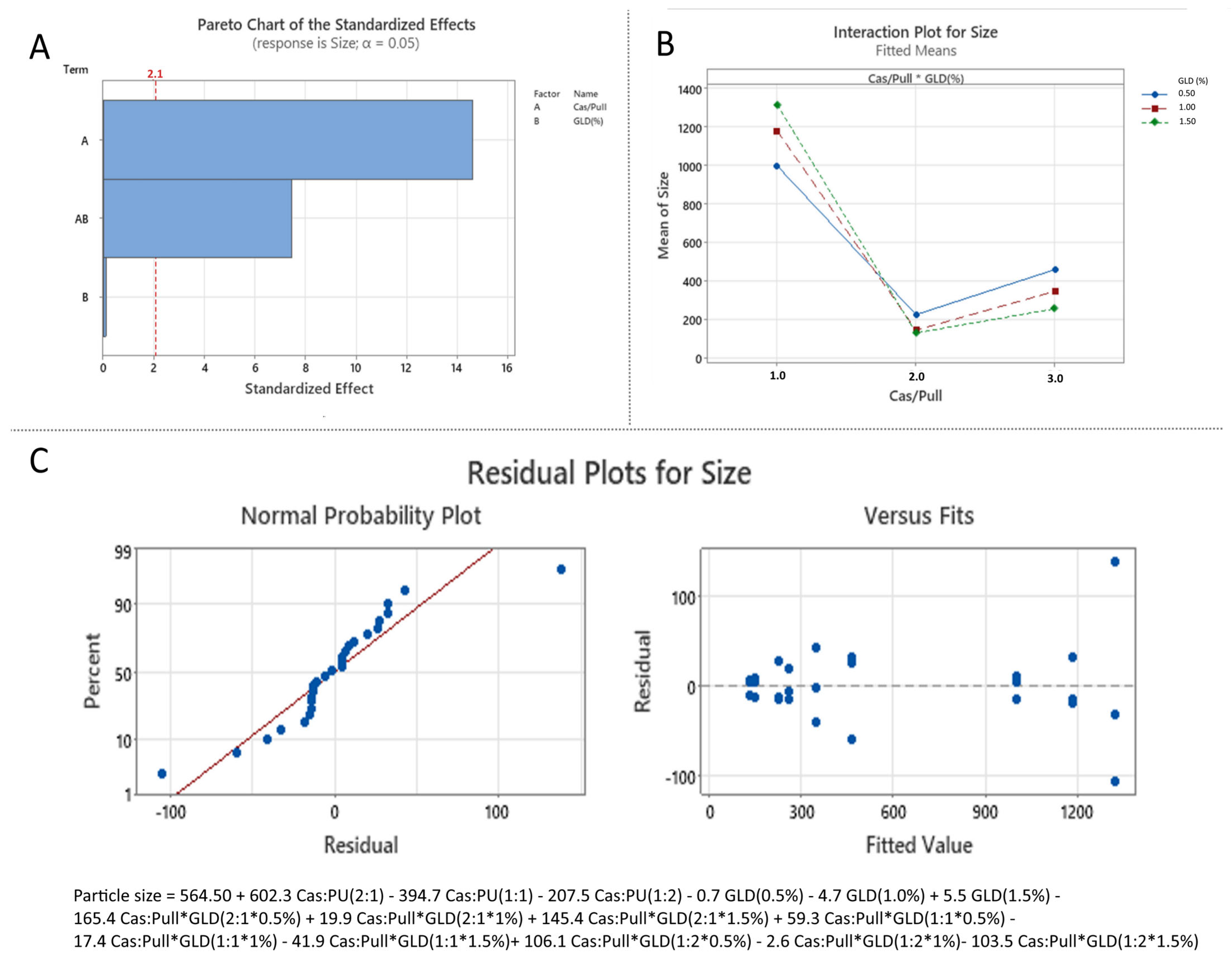 3.3.1. Effect of the Independent over Particle Size (Effect of Formulation Variables on Particle Size)
