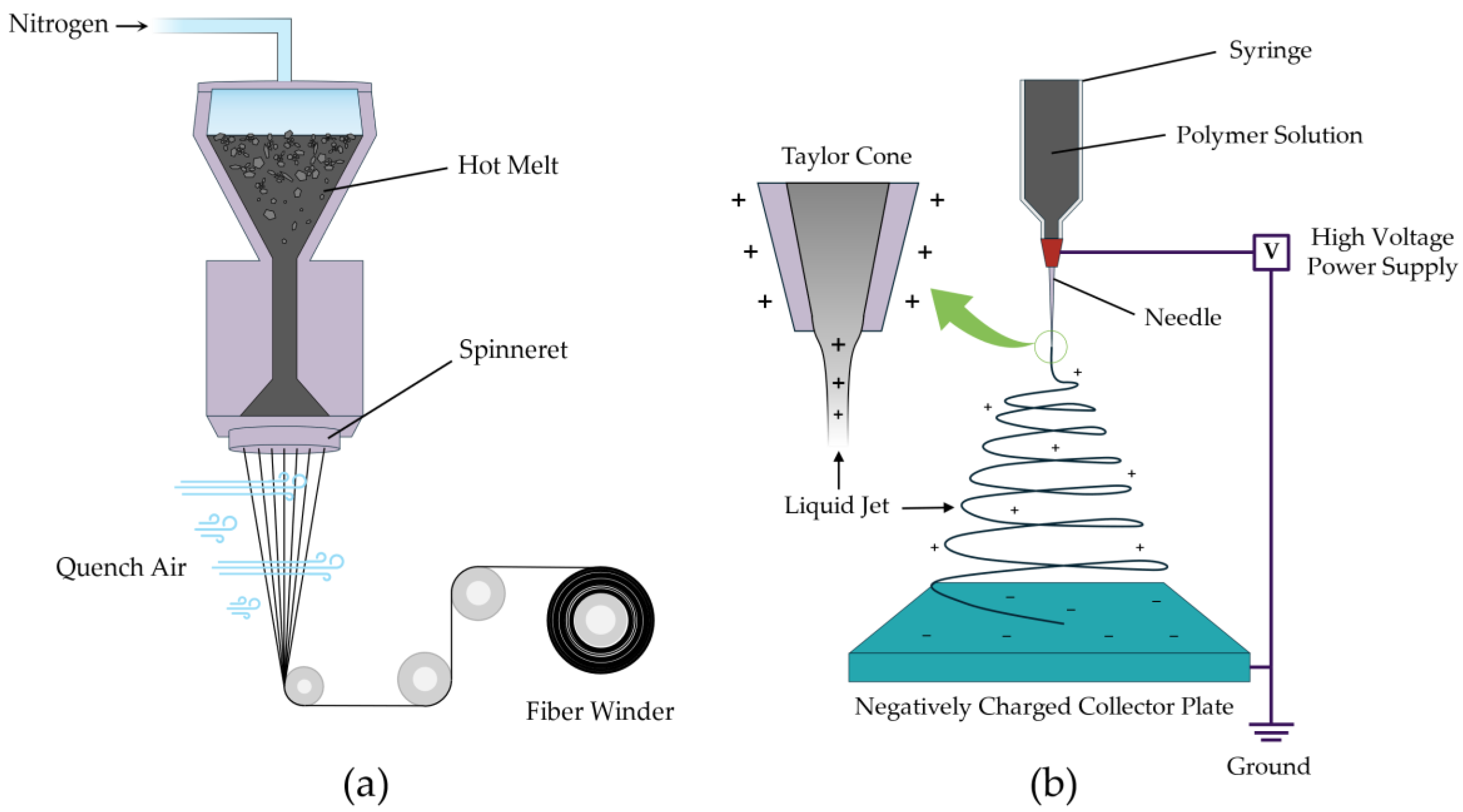 2.1. Fiber Formation: Melt Spinning and Electrospinning