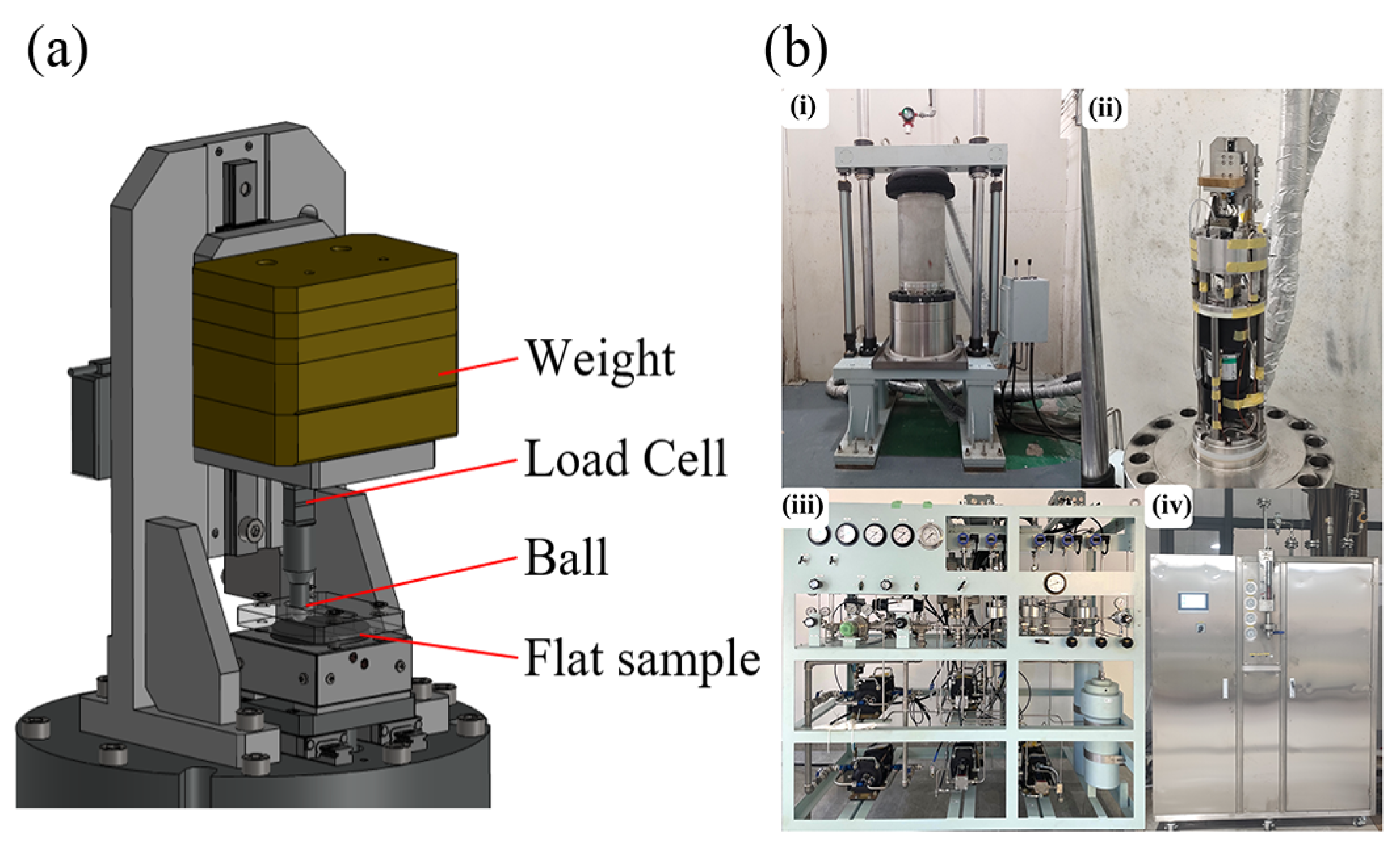 - Duranty, E.R.; Roosendaal, T.J.; Pitman, S.G.; Tucker, J.C.; Owsley, S.L., Jr.; Suter, J.D.; Alvine, K.J. An in Situ Tribometer for Measuring Friction and Wear of Polymers in a High Pressure Hydrogen Environment. Rev. Sci. Instrum. 2017, 88, 095114. [Google Scholar] [CrossRef] [PubMed]