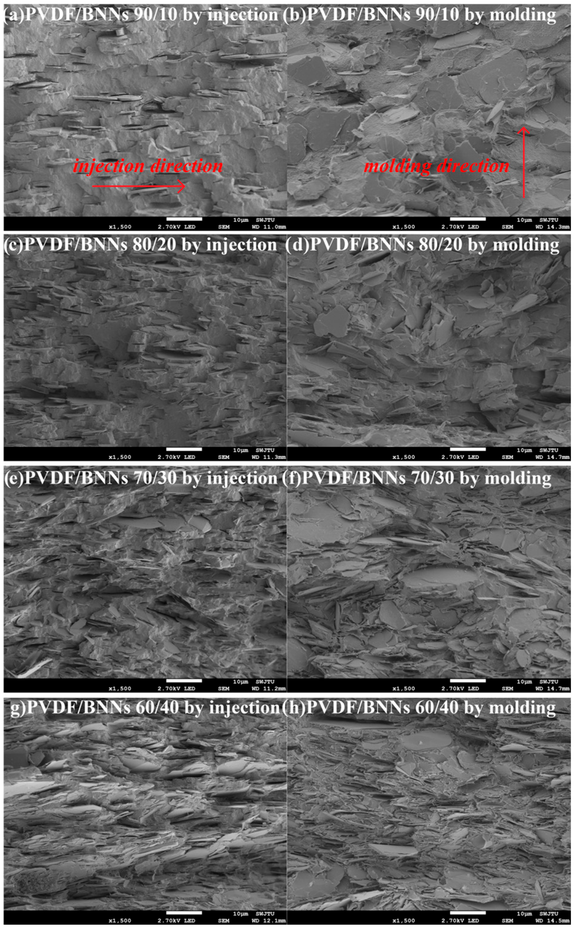 - Lei, Y.Z.; Liang, M.; Chen, Y.; Wang, H.; Liu, X.; Zhang, Q. Crystallization and thermal conductivity of poly (vinylidene fluoride)/boron nitride nanosheets composites. Polym.-Plast. Technol. Mater. 2020, 59, 1552–1561. [Google Scholar] [CrossRef]