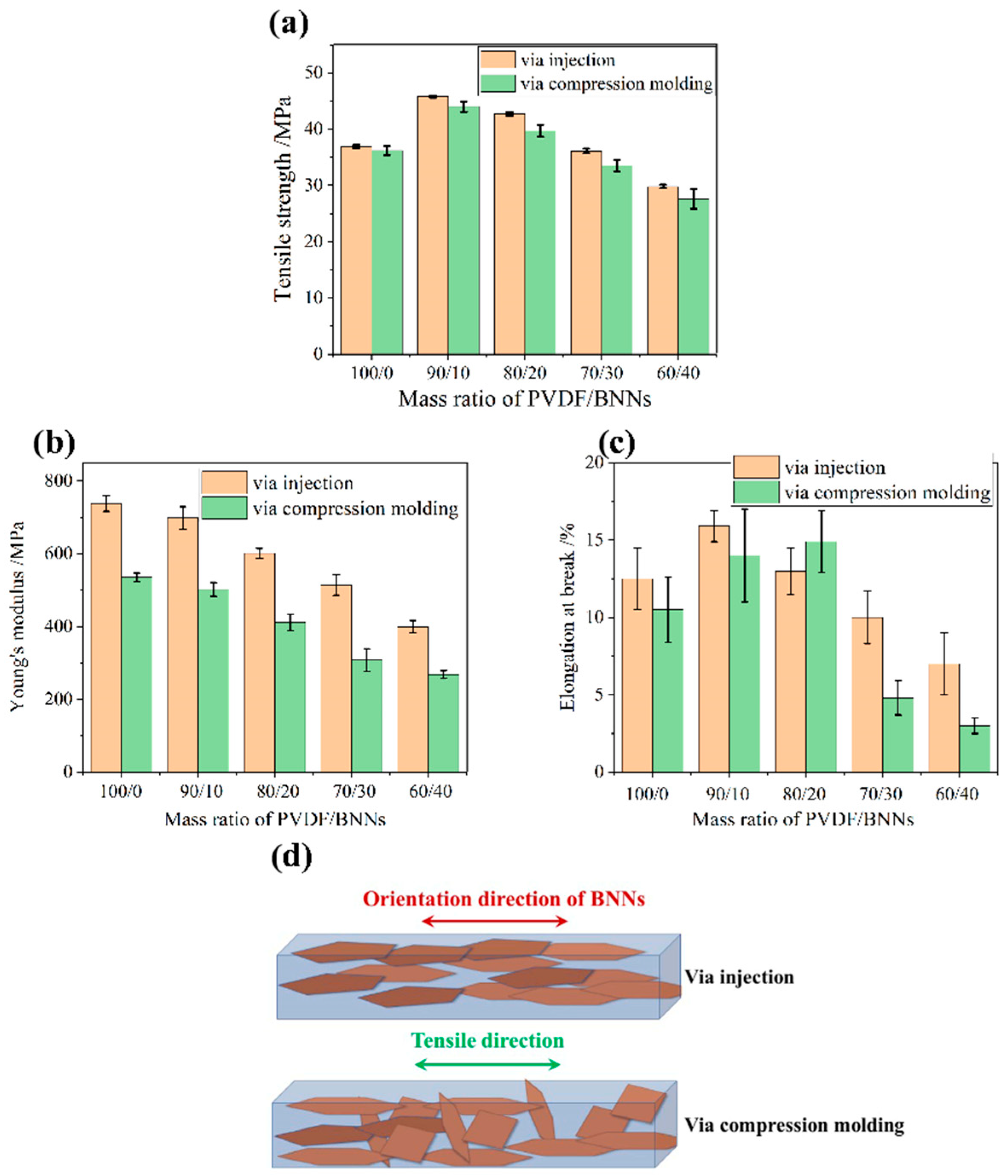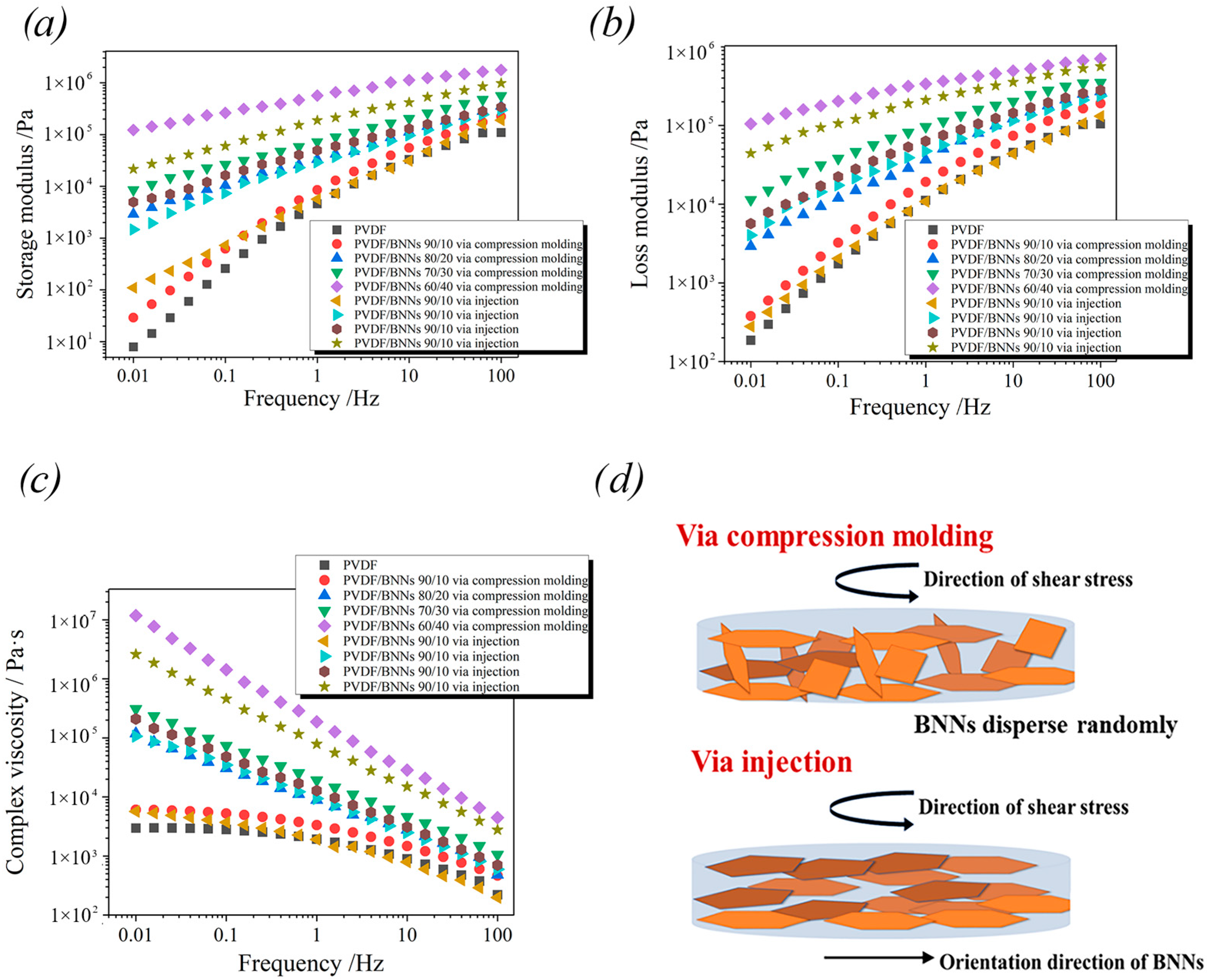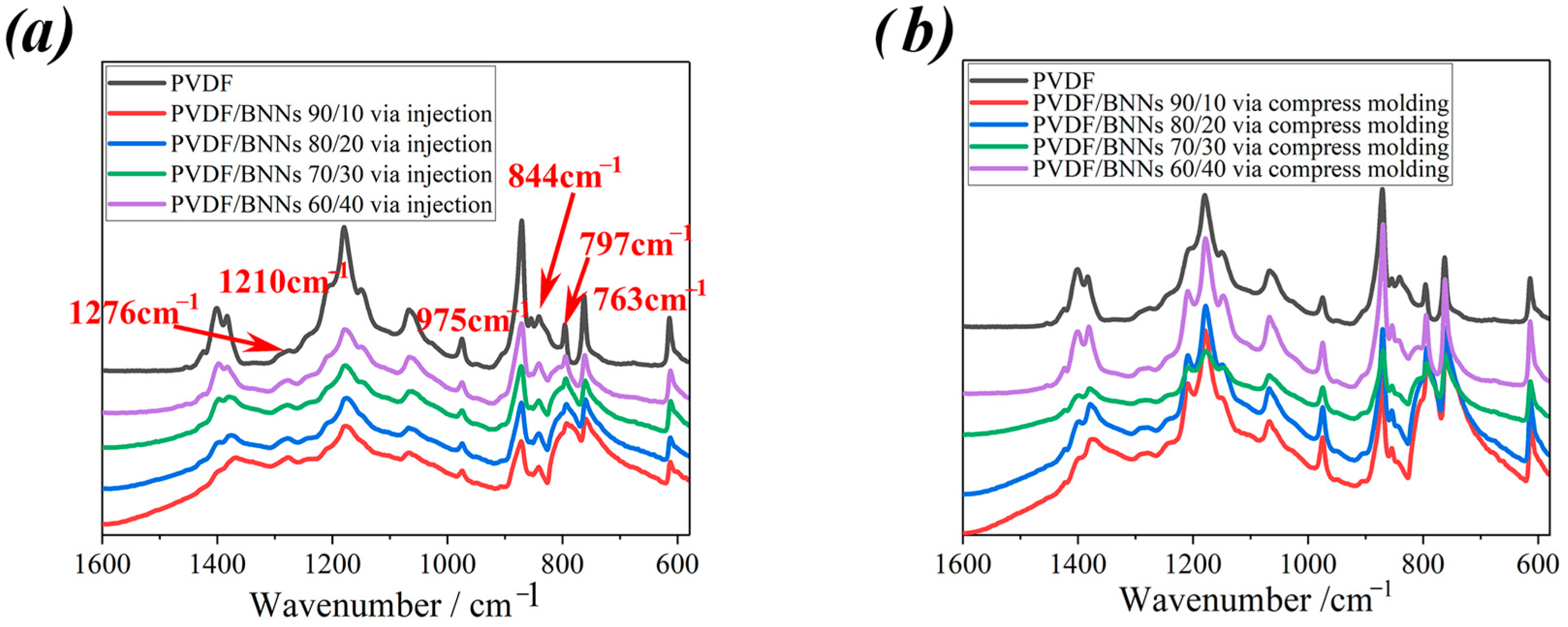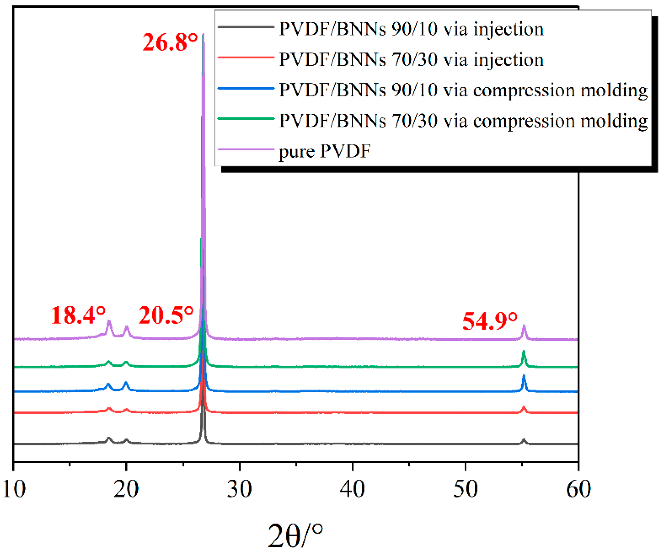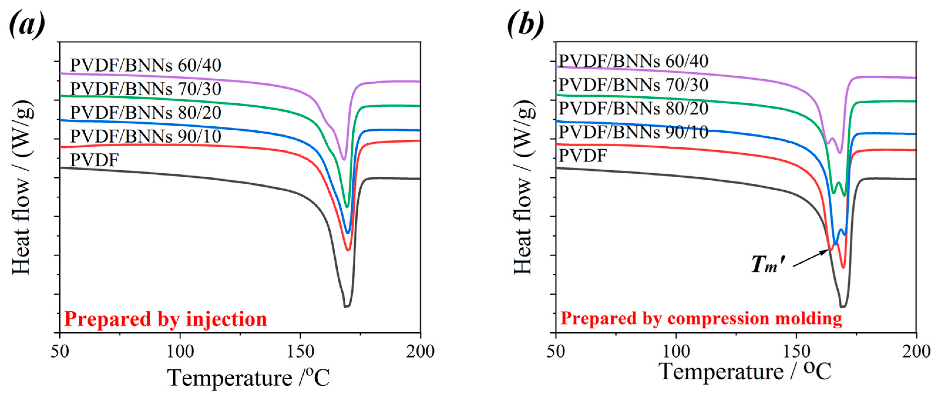 | Prepared by compression molding | PVDF/BNNs 90/10 | 169.4 | 164.2 | 50.4 |