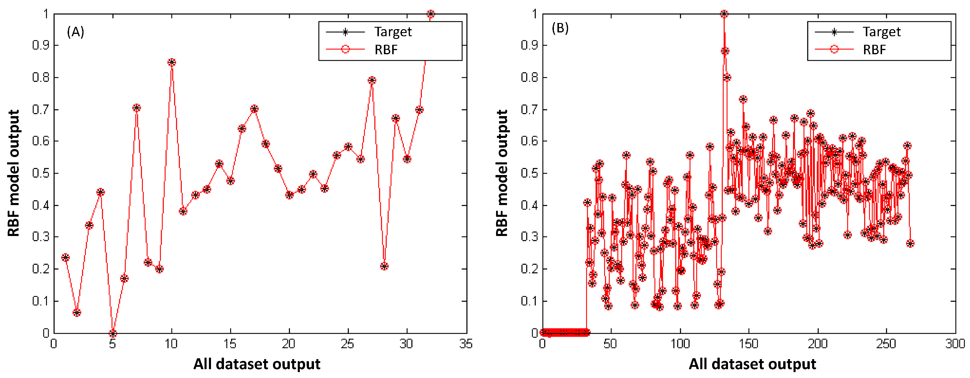 2.4.3. Radial Basis Function (RBF) Network Model, Design Factors, Training Parameters
