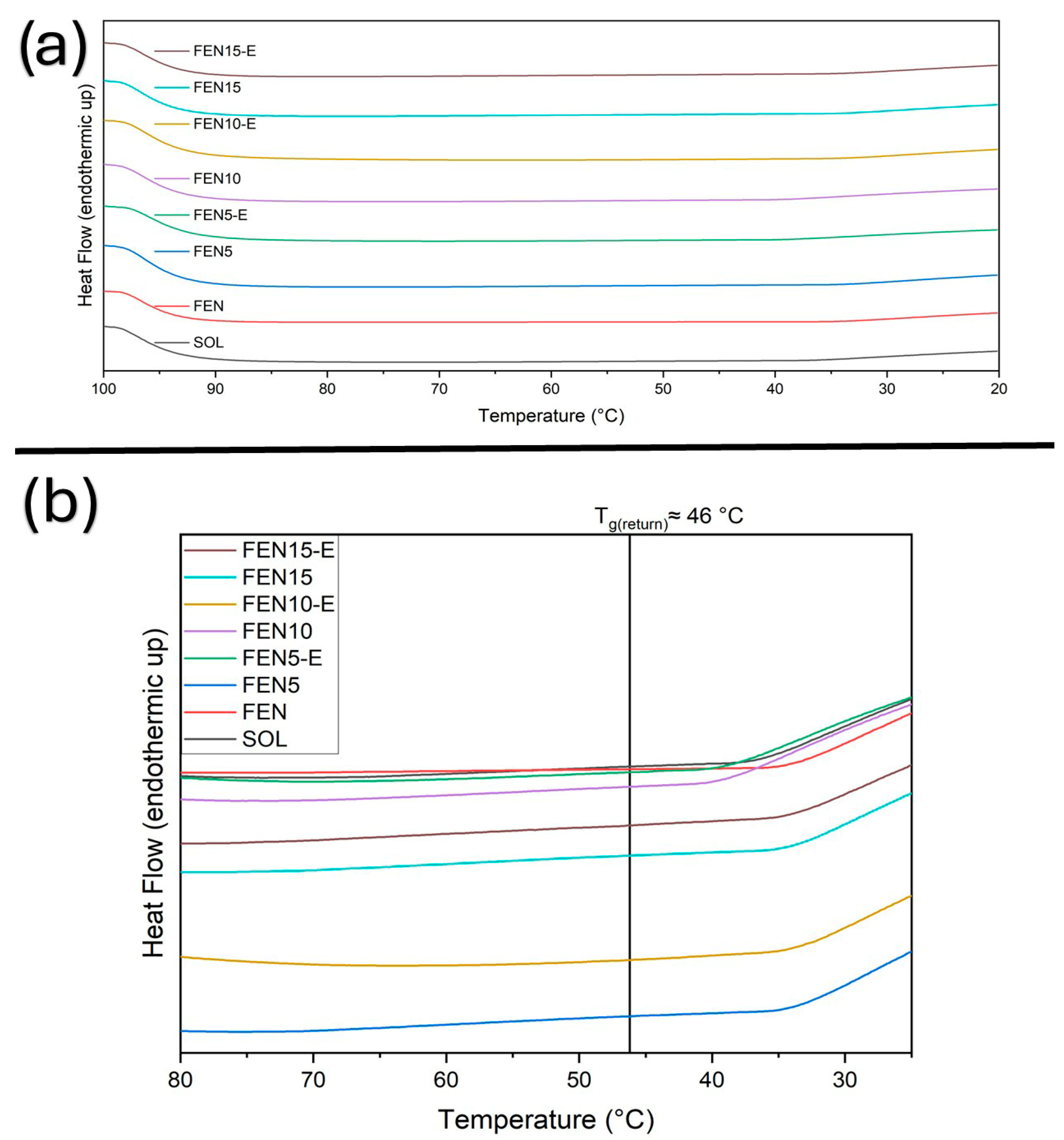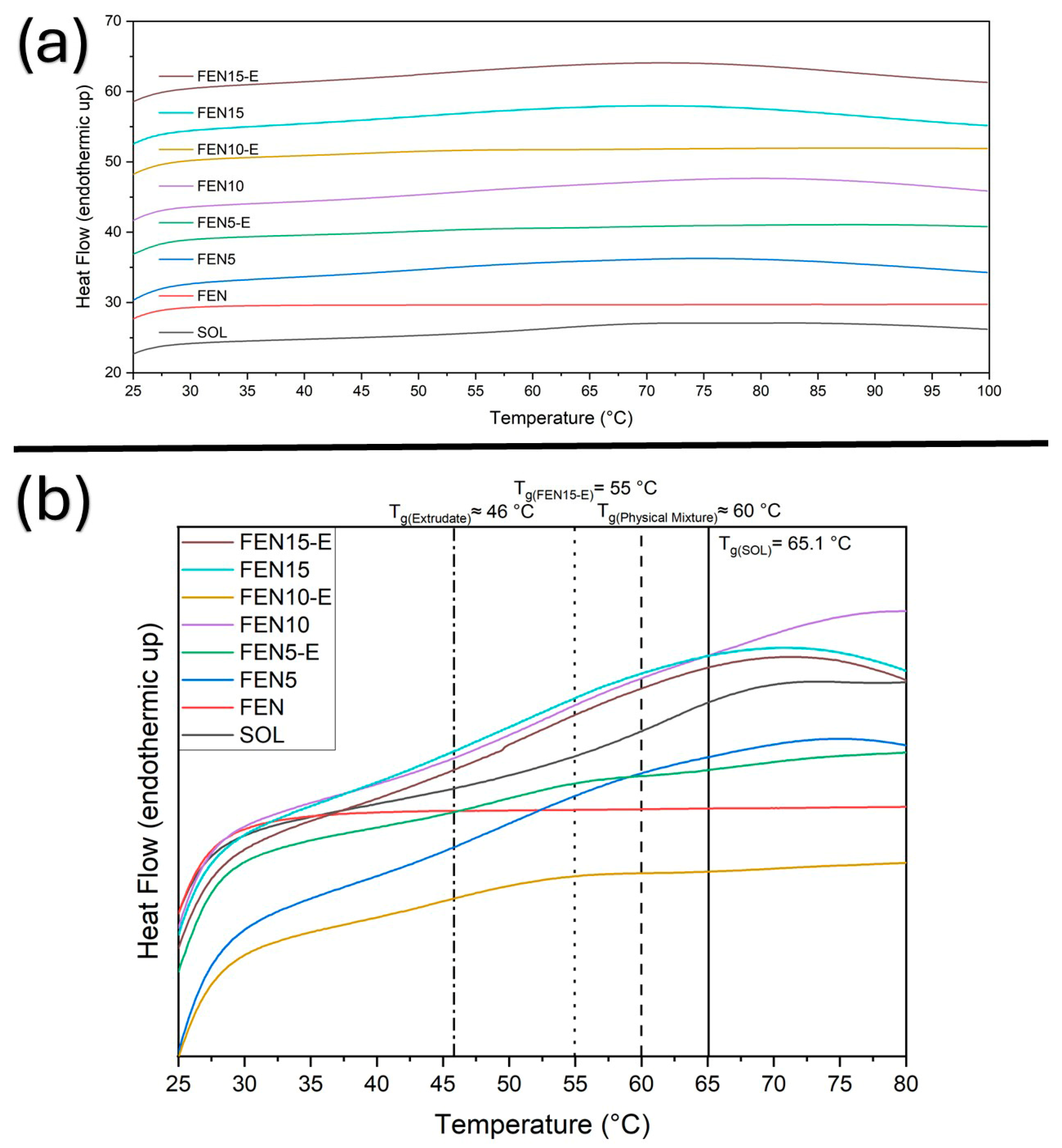 | Sample | Tg (1st Heating Cycle) °C | Tg (1st Cooling Cycle) °C | Tg (2nd Heating Cycle) °C | Tm (2nd Heating Cycle) °C |