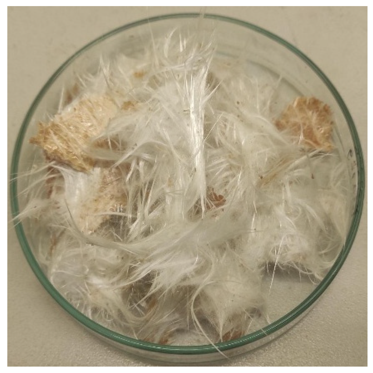 After each reaction, the solid and liquid phases were separated by filtration. The recovered fibers were thoroughly washed by immersion in a hot water bath (60 °C) for 10 min, followed by an acetone rinse. This process ensures the removal of degradation residues from the fiber surface. Finally, fibers were dried in an oven at 60 °C for 4 h and weighed, for the degradation yield determination.