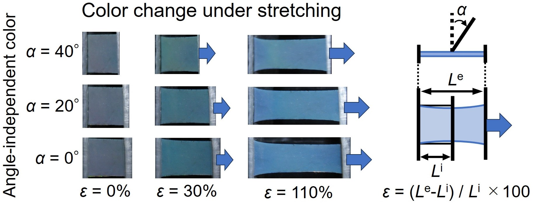 APA StyleHirano, Y., Hayashi, K., & Kanai, T. (2026). Angle-Independent Color Changes in Elastomer-Immobilized Non-Close-Packed Colloidal Amorphous Films Under Stretching. Polymers, 18(3), 382. https://doi.org/10.3390/polym18030382