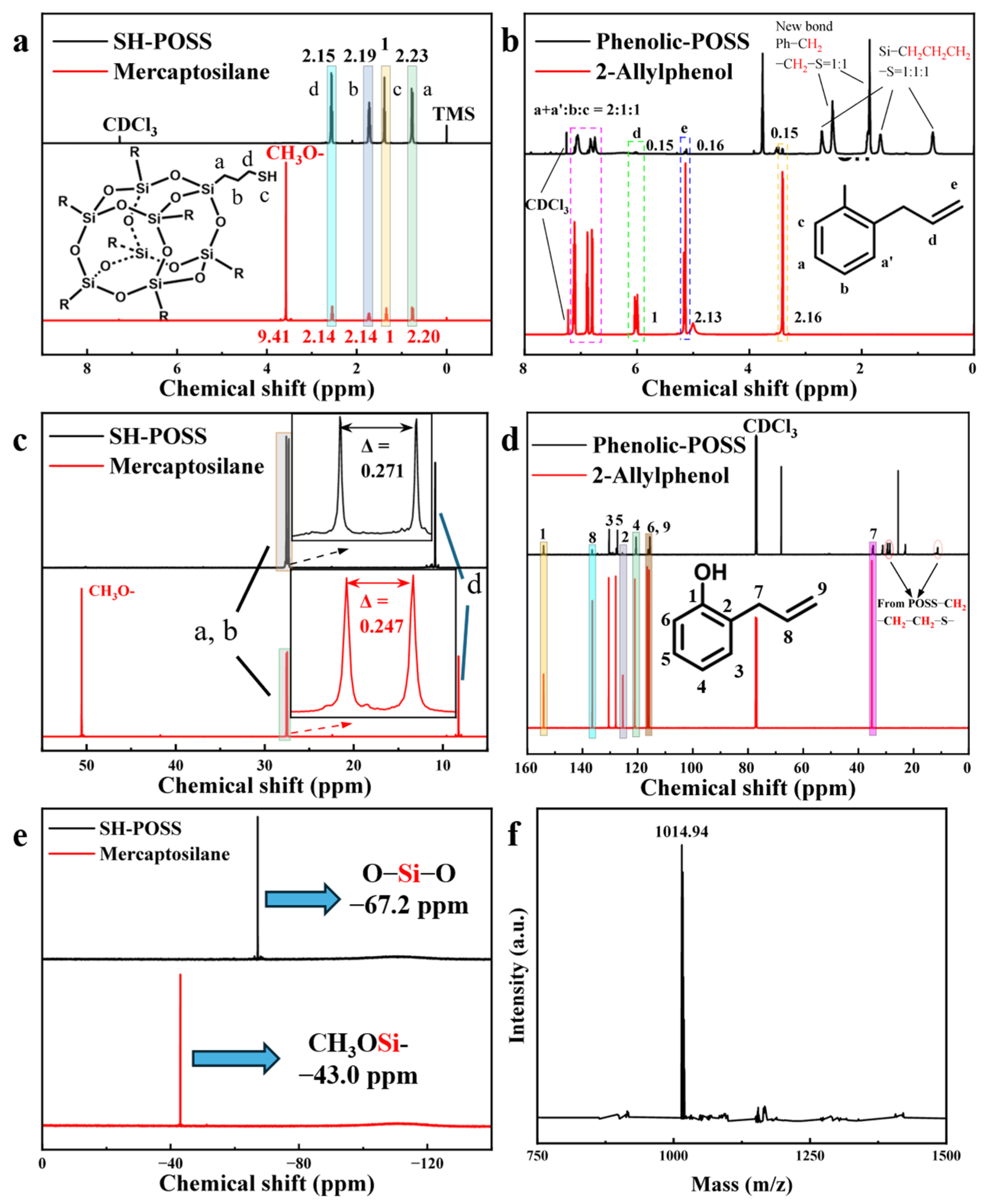 3.1. Characterization of SH-POSS, Phenolic-POSS and POSS-PR