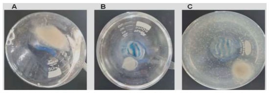 AsChII-C2B3 activity on the growth of fungus L. theobromae in liquid media. (A) fungal growth in the absence of the enzyme, (B) fungal growth in the presence of commercial fungicide Amphotericin B, and (C) fungal growth in the presence of the AsChII-C2B3. Each experiment was conducted with a minimum of three independent replicates.
