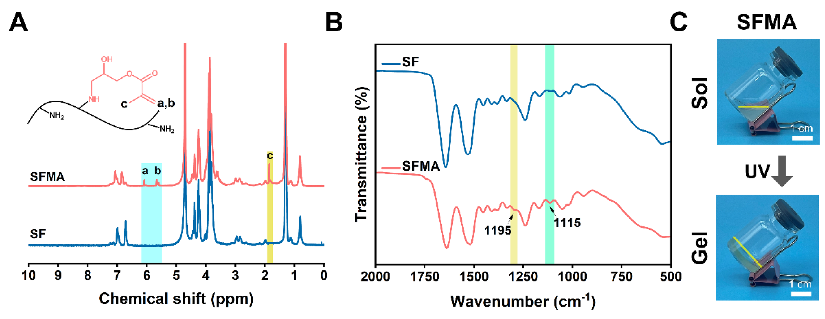 Figure 2A). In the subsequent analysis, FTIR was employed to investigate the functional groups and secondary structure of SF and SFMA.