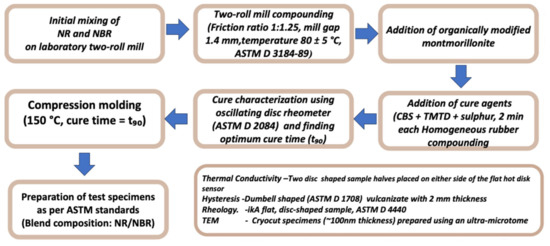 The NBR, an oil-resistant synthetic rubber produced from a copolymer of acrylonitrile and butadiene, was supplied by Eliokem Industries Ltd. (Mumbai, India). Its main characteristics are reported in Table 2.
