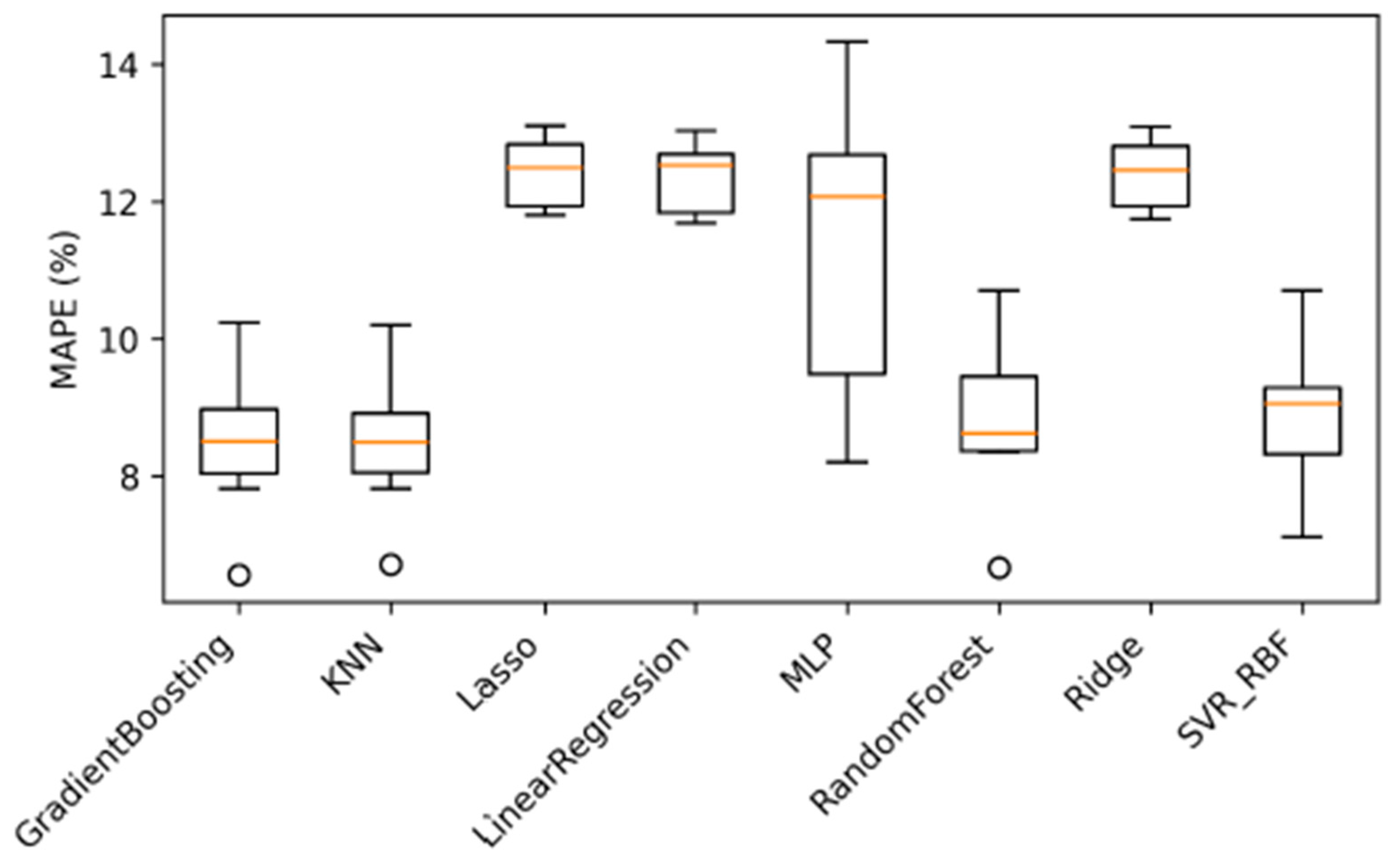 y-axis quantifies MAPE values, spanning approximately from 5% to 11%.
