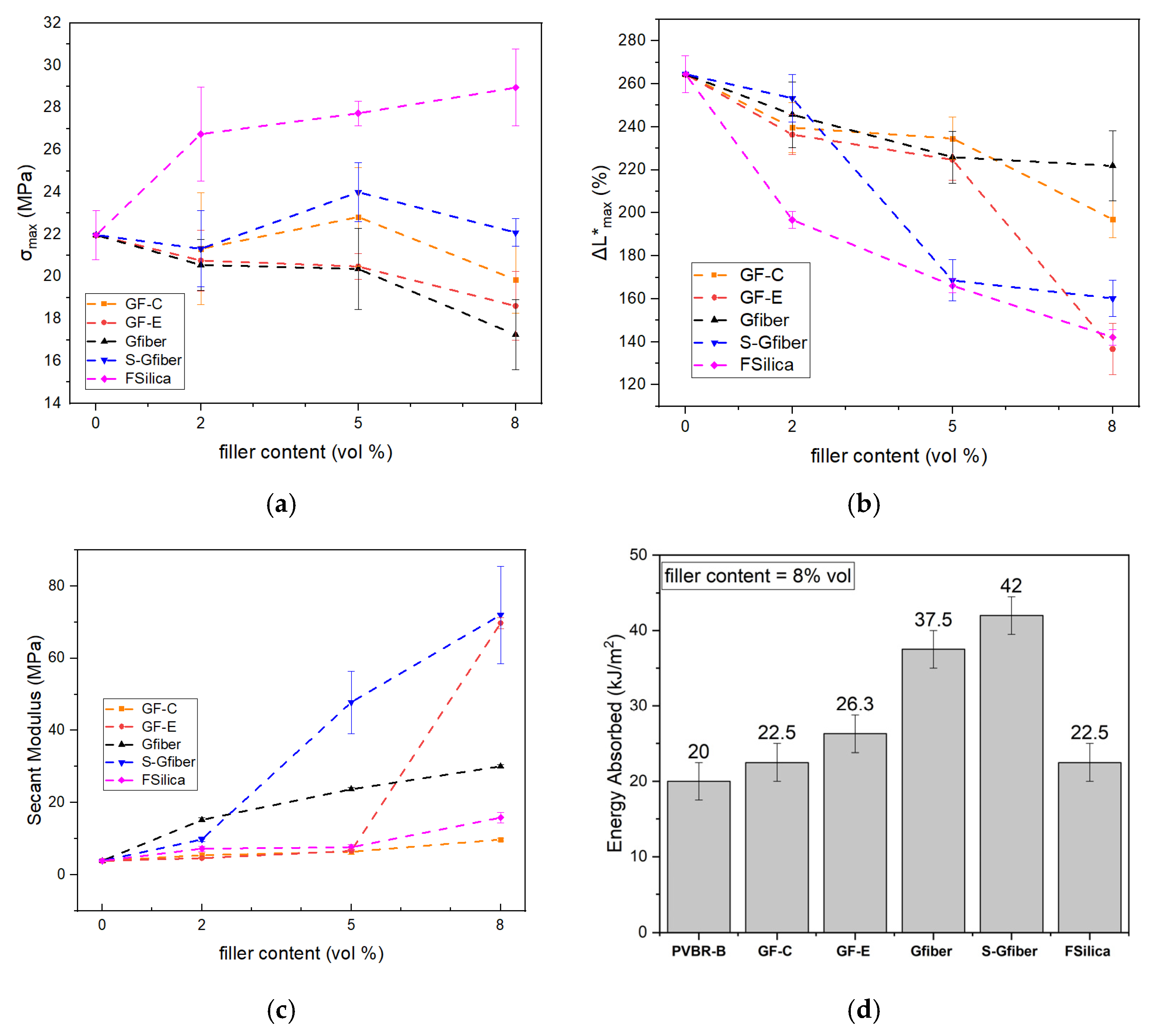 3.1. Morphology of PVB Composites