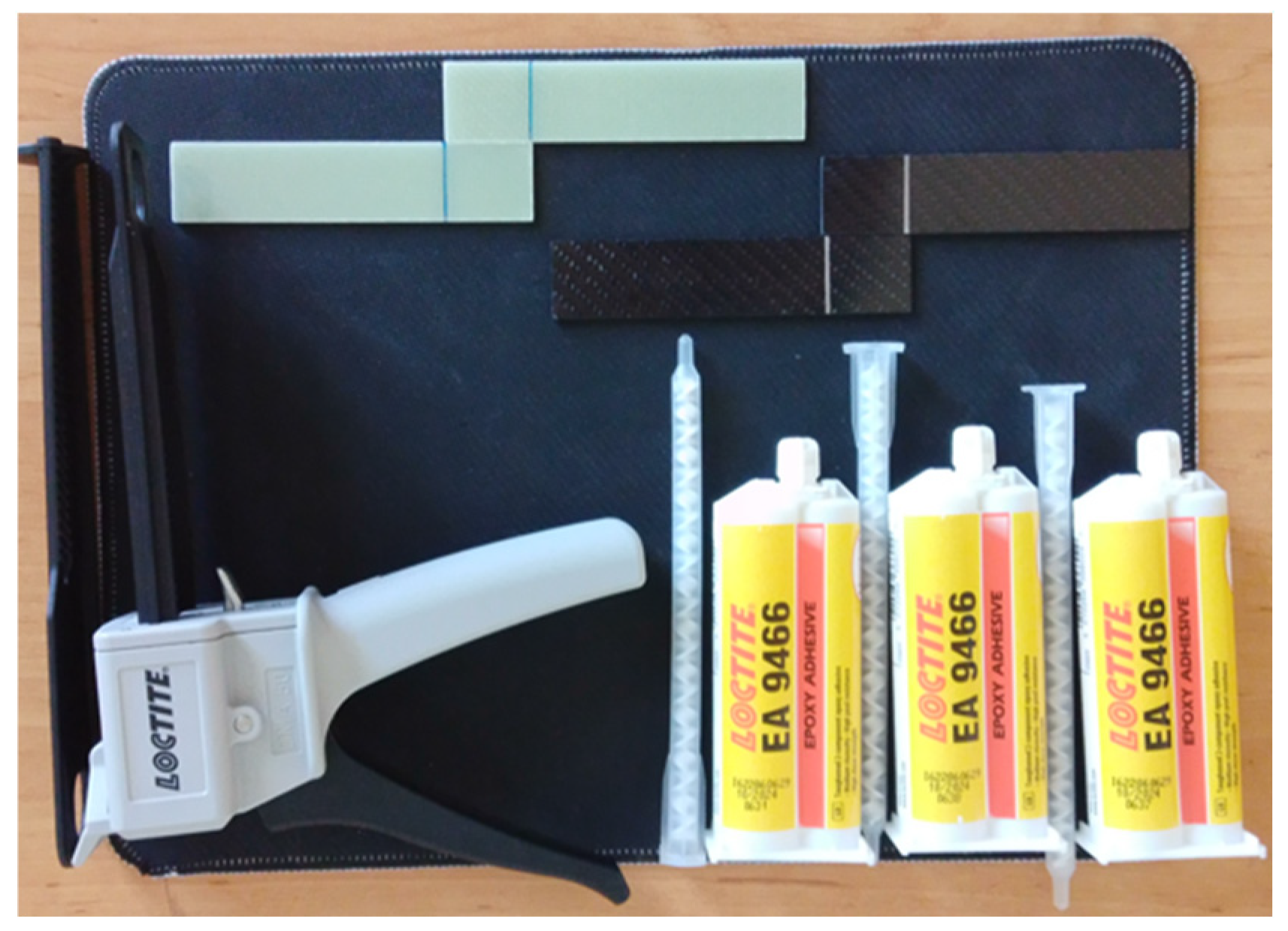 The samples were prepared by bonding solvent-cleaned surfaces with adhesive. Bonding was achieved with two-component Loctite Hysol-9466 (Alpanhidrolik, Eskişehir, Turkey) epoxy, cured at room temperature and mixed at a 2:1 ratio in the applicator gun (