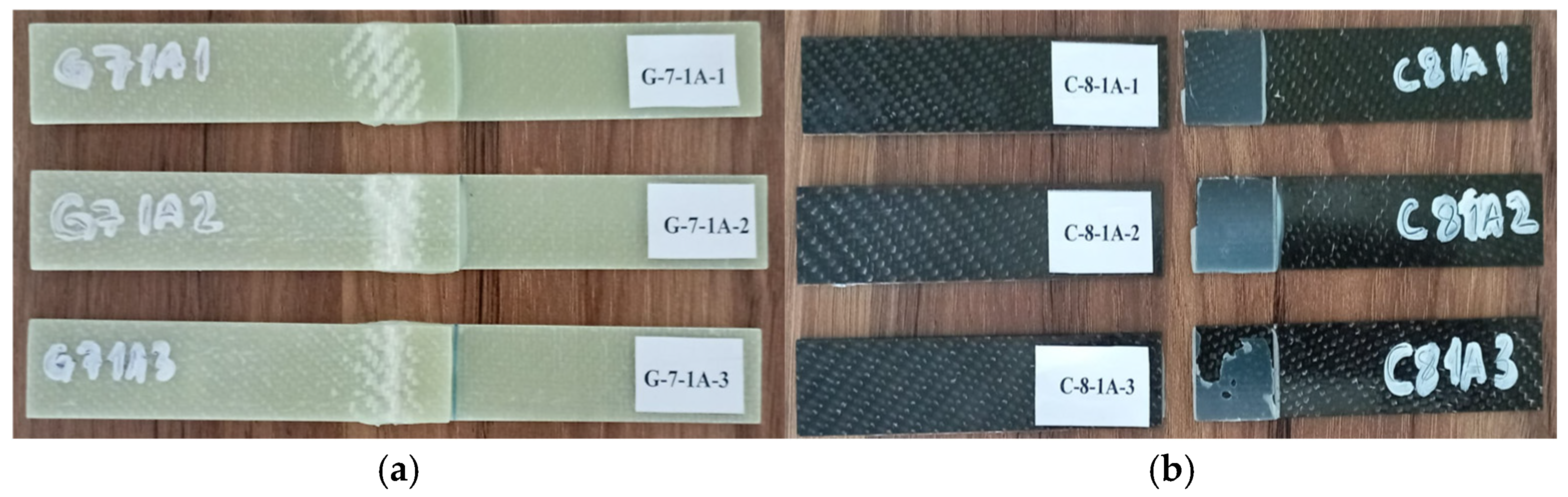 Figure 13). This test method is particularly useful for determining the damage mechanisms that occur in the adhesive interface and joint regions of single-lap GFRP and CFRP composite joints aged in marine environments, as well as for analyzing time-dependent variations in their mechanical properties.