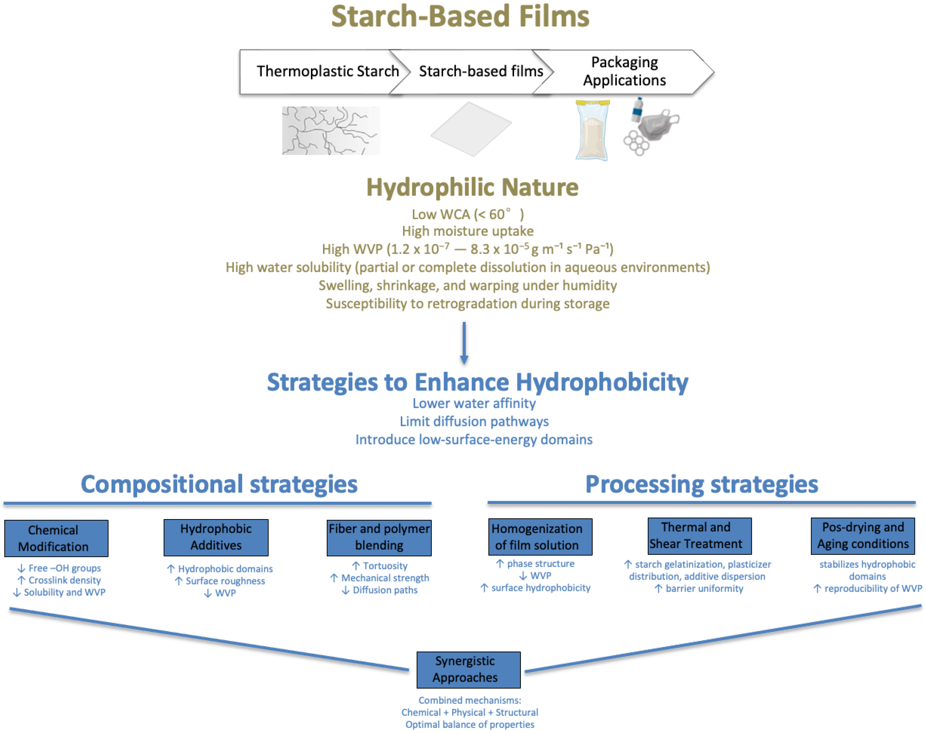 Hydrophobicity Strategies of Starch-Based Films: Recent Advances and Perspectives