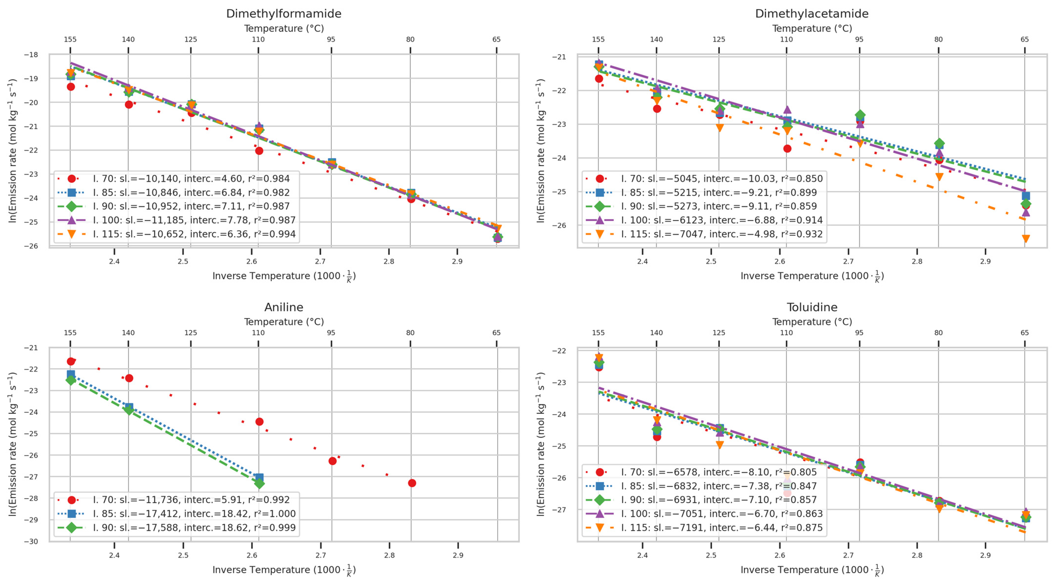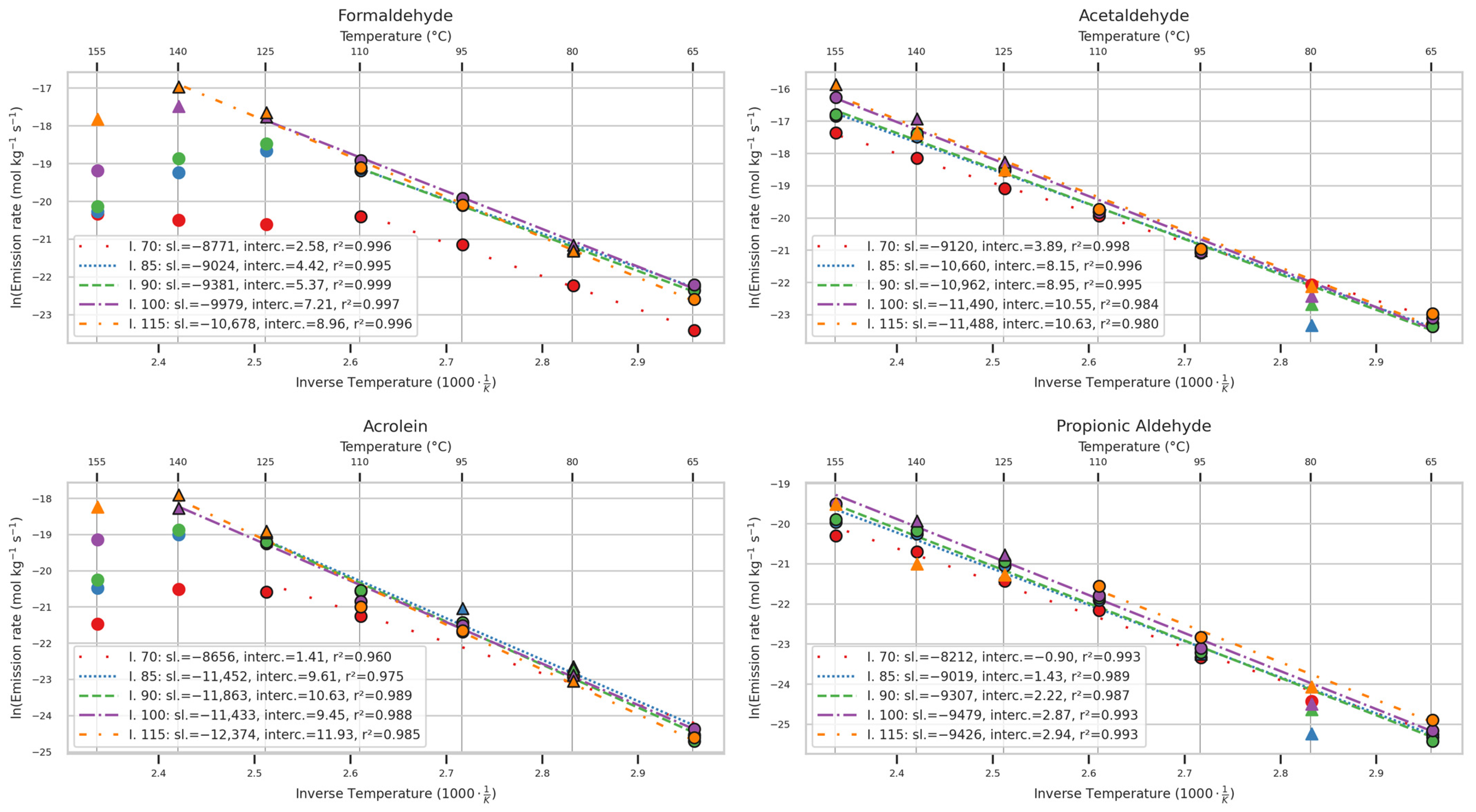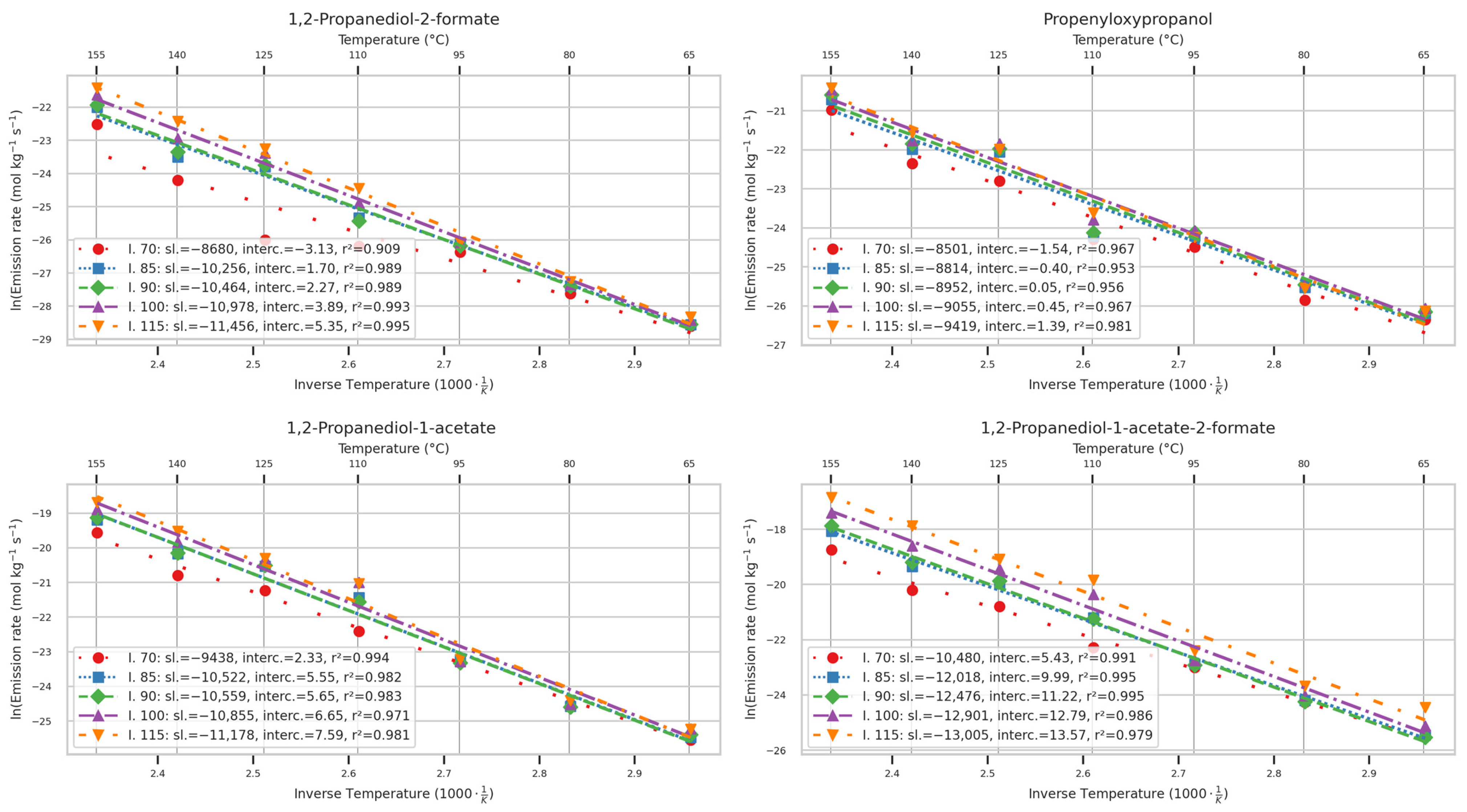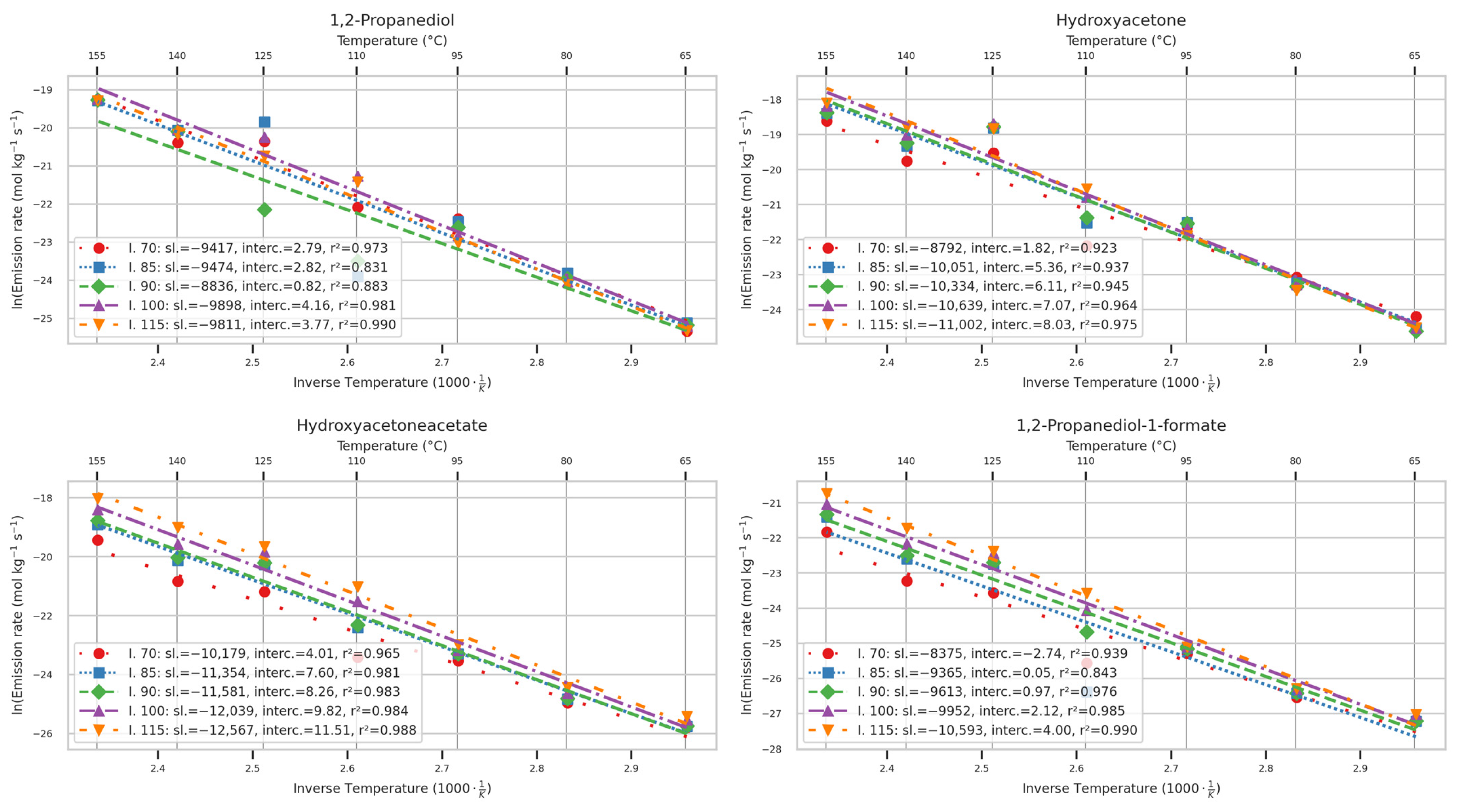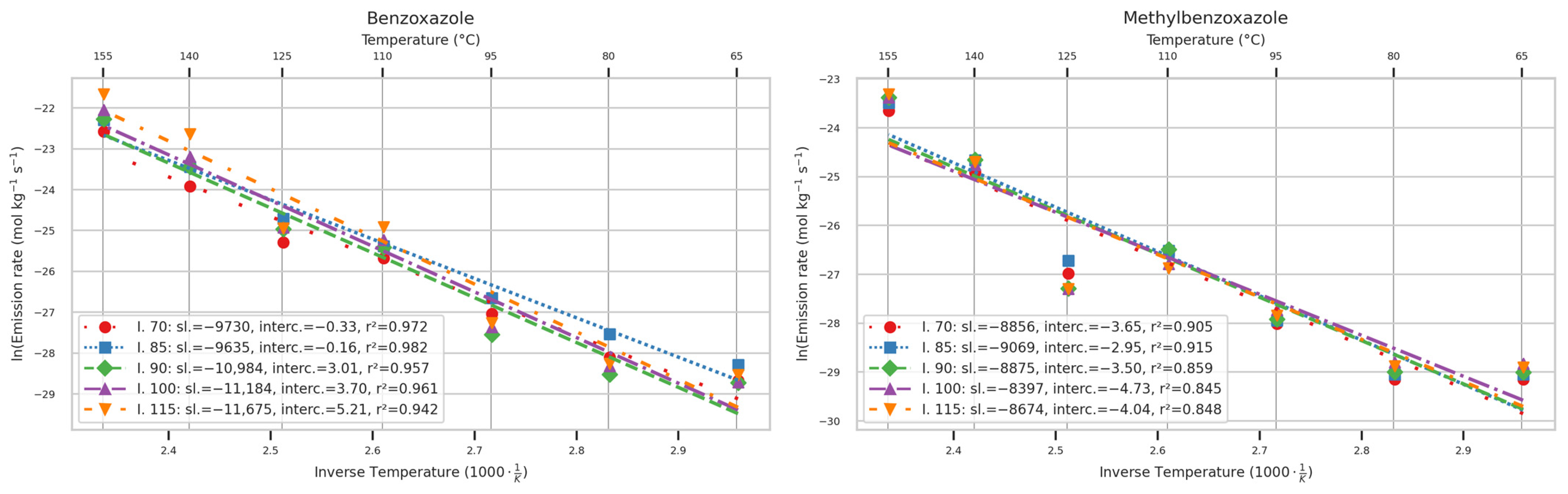 2.12. Arrhenius Graphs of Emission Rates